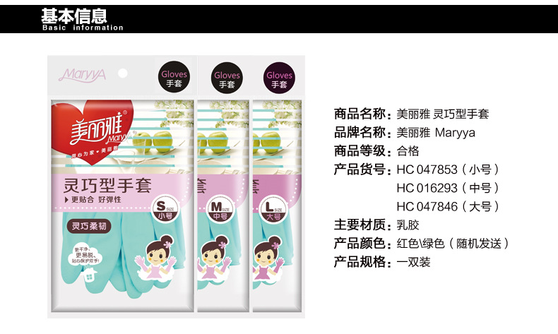 美丽雅灵巧型乳胶手套,胶皮手套, 防滑手套,洗碗,做卫生,保护好手。洗碗防水橡胶家务手套