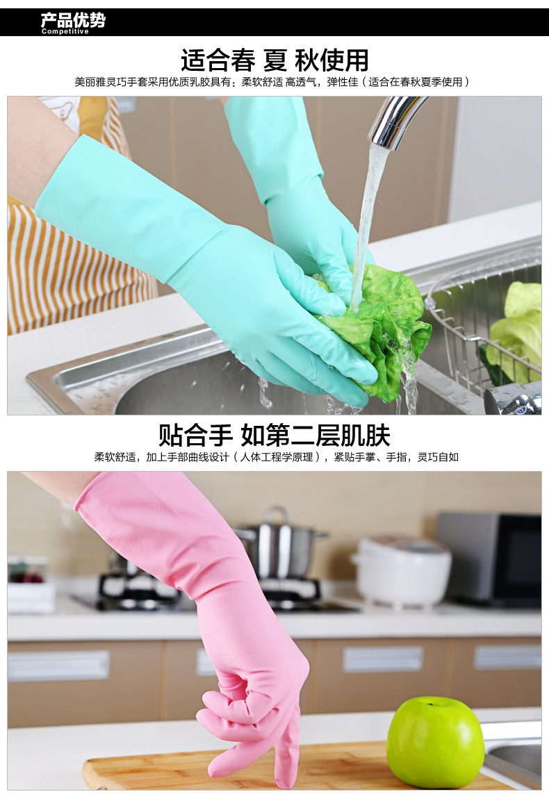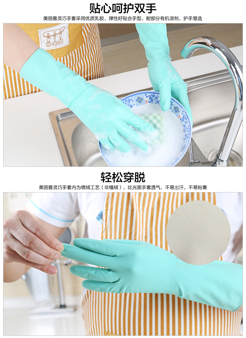 美丽雅灵巧型乳胶手套,胶皮手套, 防滑手套,洗碗,做卫生,保护好手。洗碗防水橡胶家务手套--聚爱城
