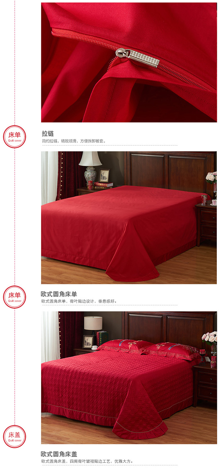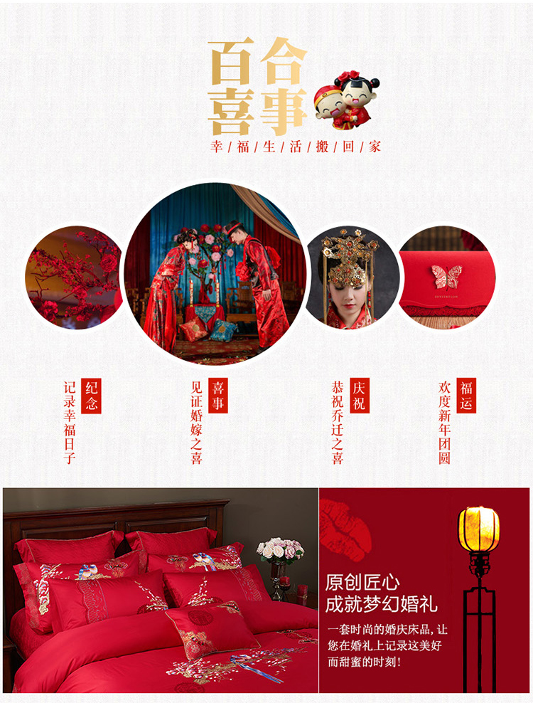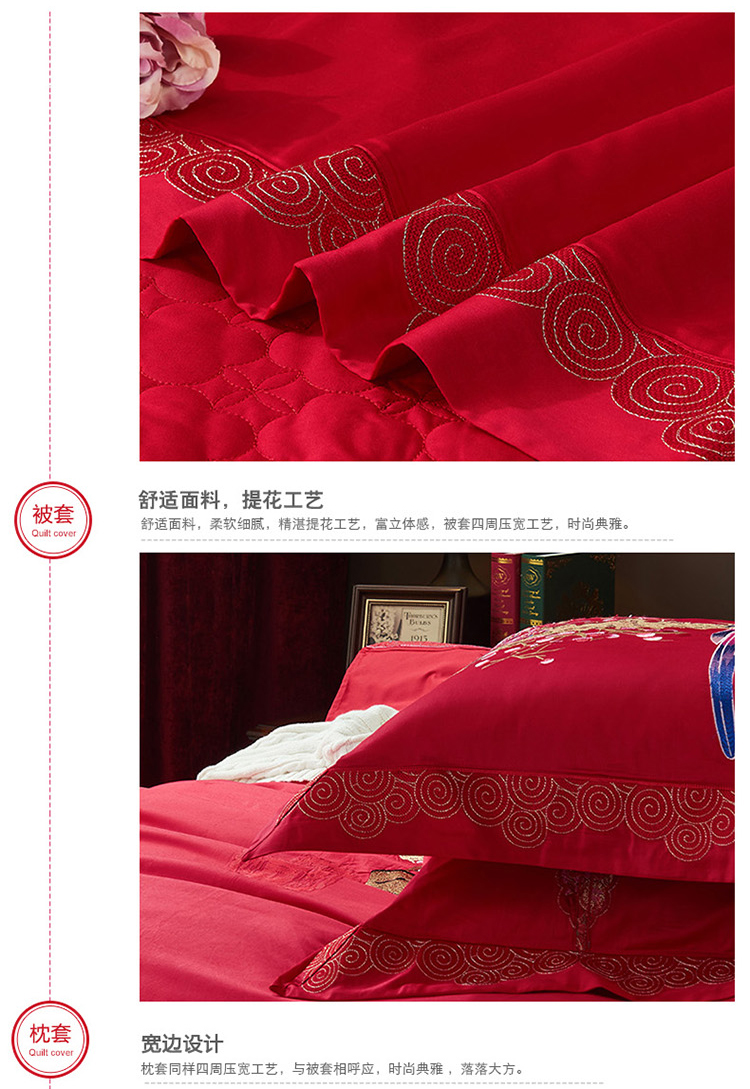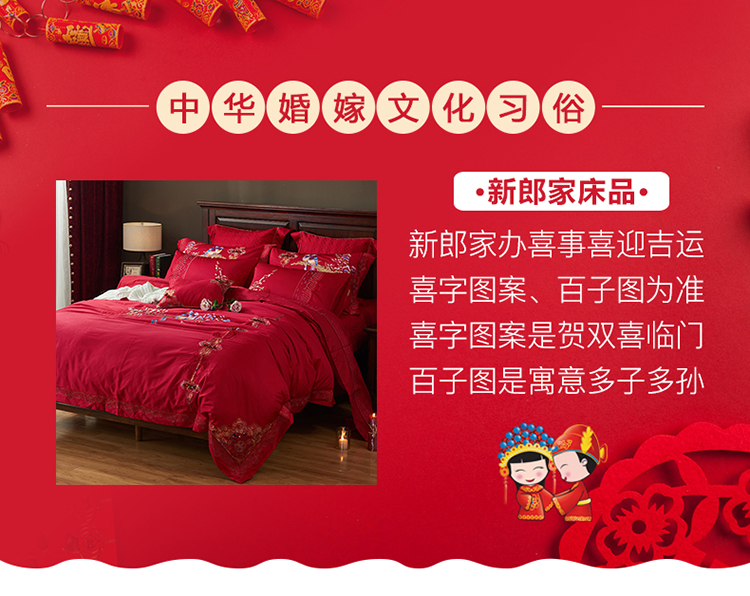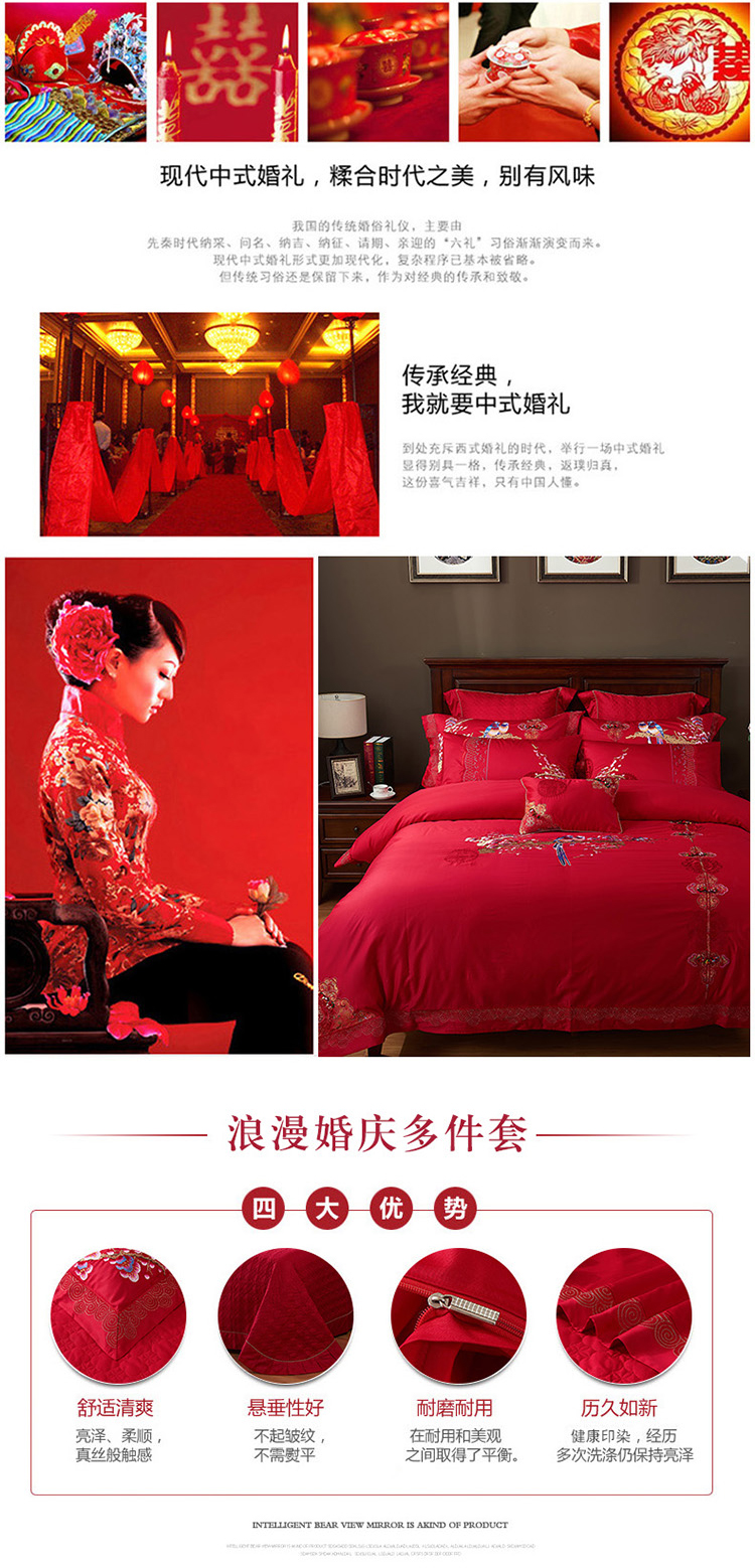 《喜鹊登门》新郎家大红色喜字刺绣图案结婚床上用品四件套喜上眉梢--聚爱城