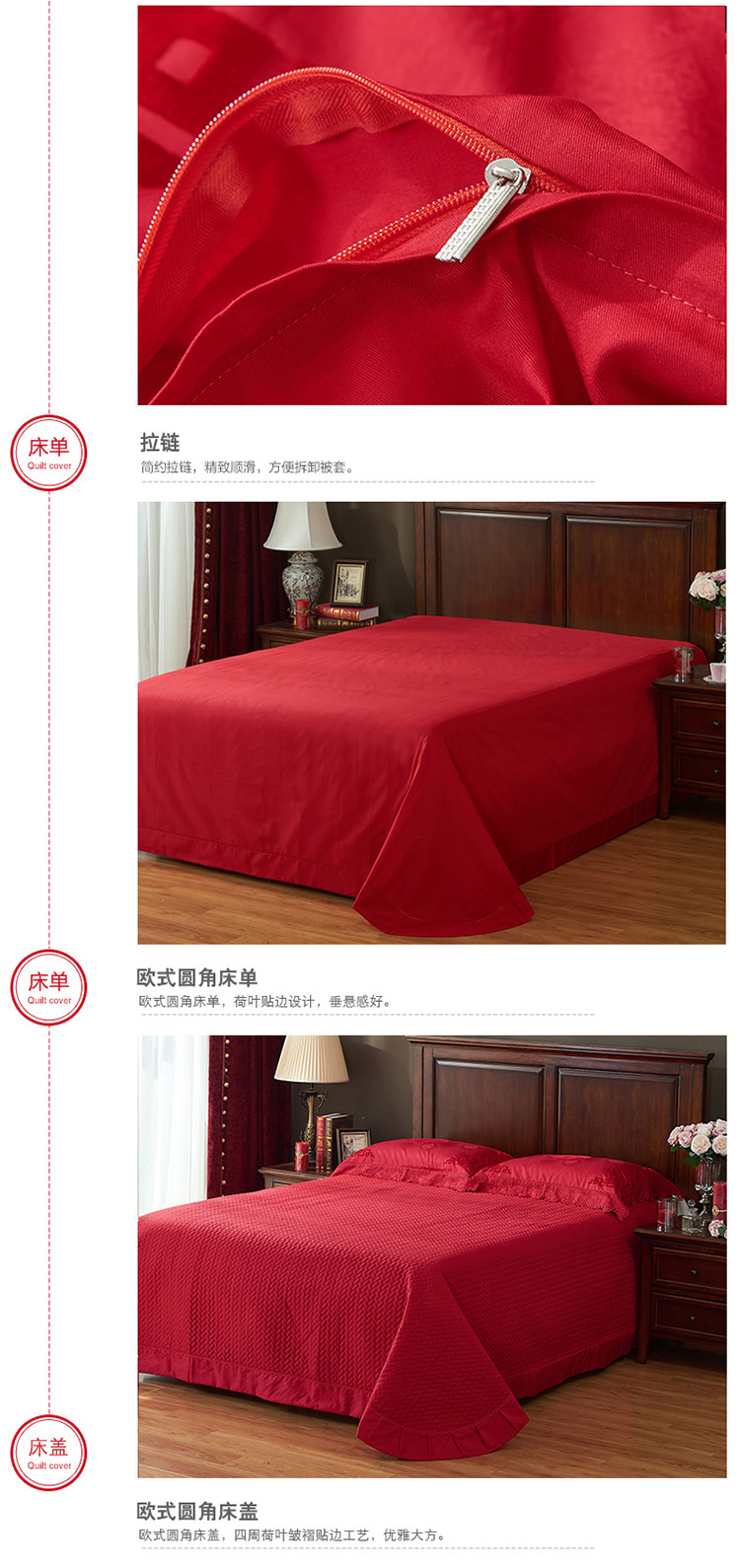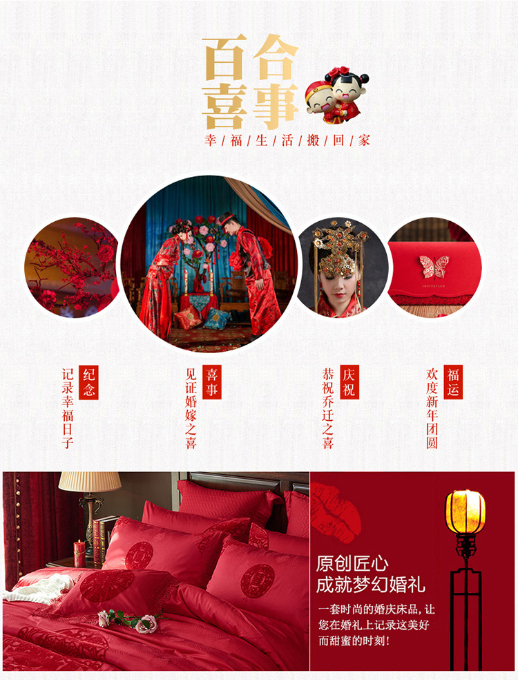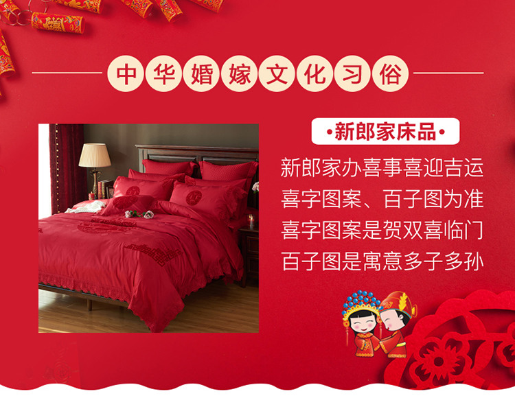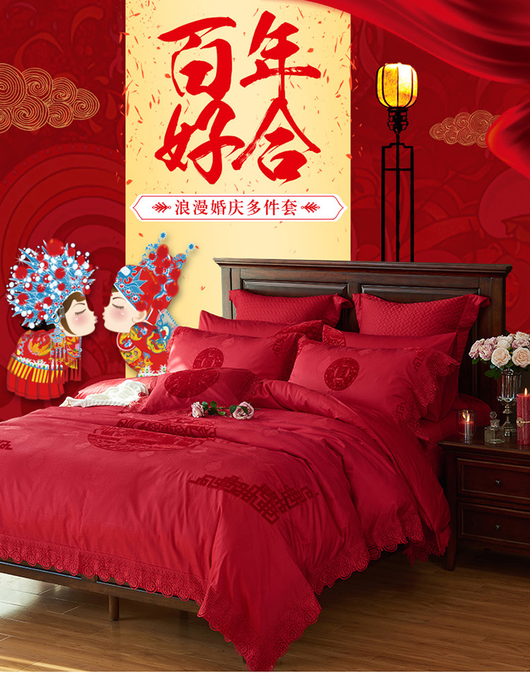 《缘定三生》新郎家大红色喜字刺绣图案结婚床上用品四件套喜上眉梢