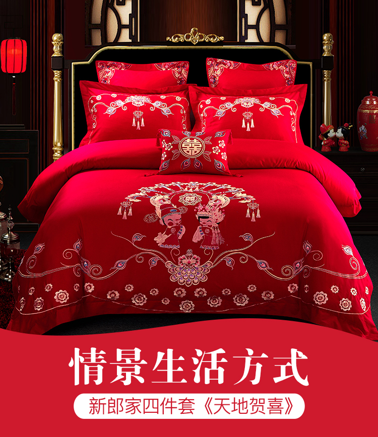 《心有灵犀》新娘嫁妆床品活性印染四件套,寓意女儿女婿婚后恩恩爱爱一生