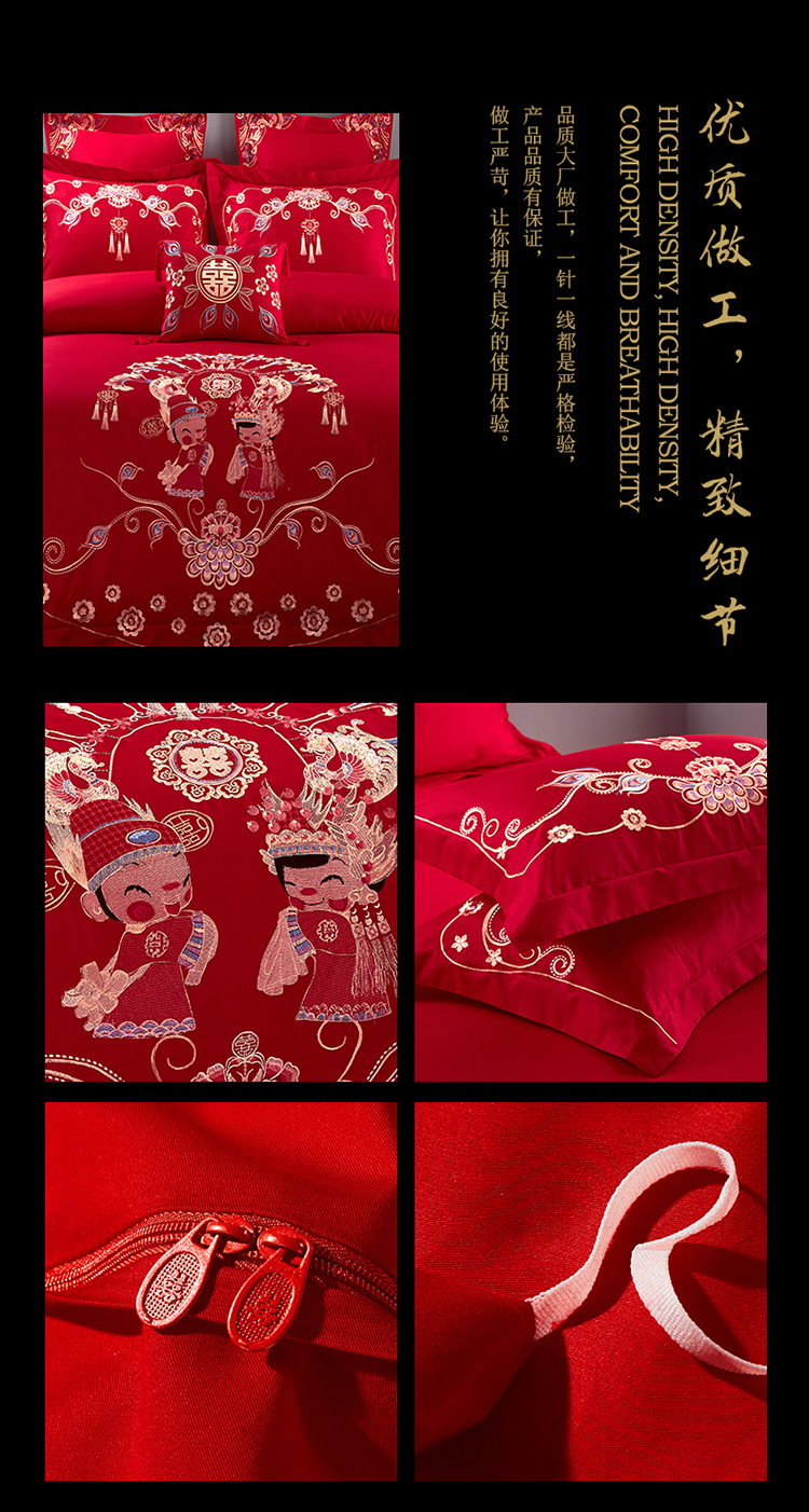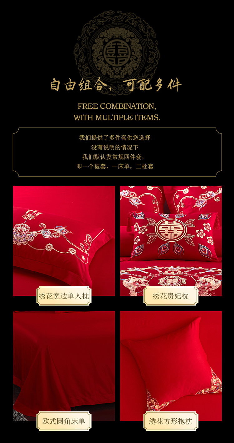 长绒棉贡缎刺绣花60支四件套床品