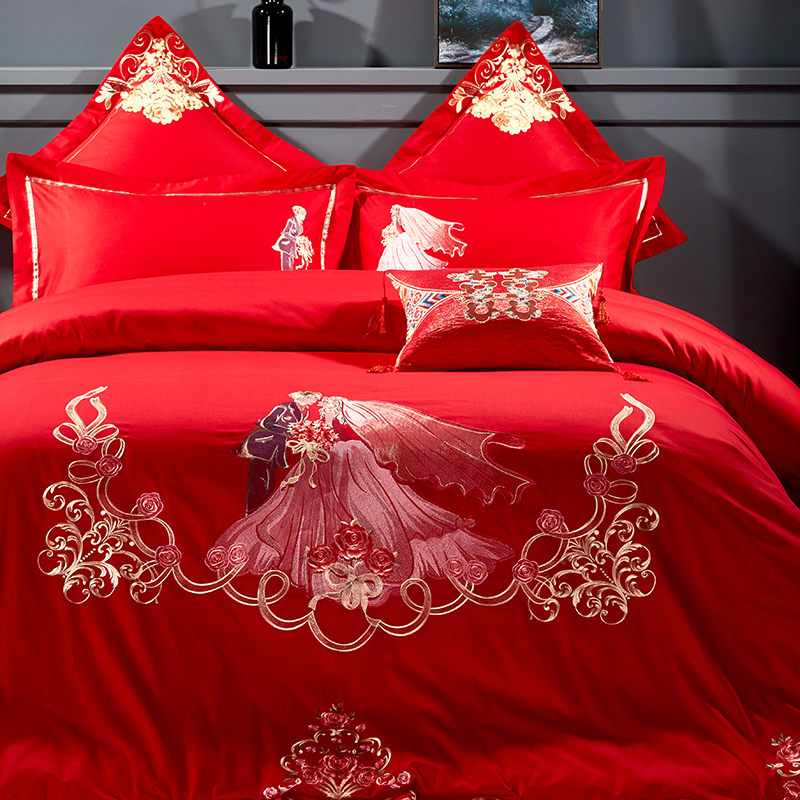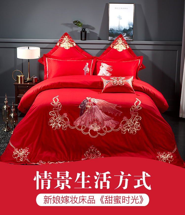 《甜蜜时光》新娘嫁妆床品活性印染四件套,寓意女儿一生爱情甜蜜相伴--聚爱城