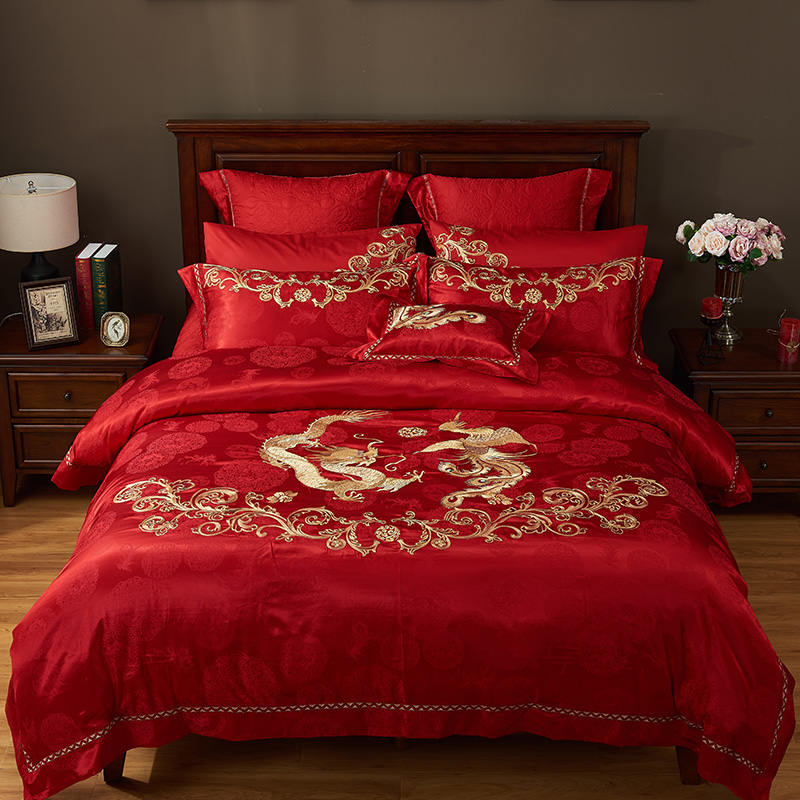 《比翼双飞》新娘嫁妆床品活性印染六件套、十件套,寓意女儿女婿恩爱一生