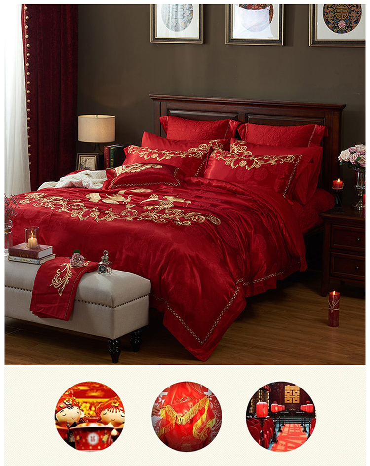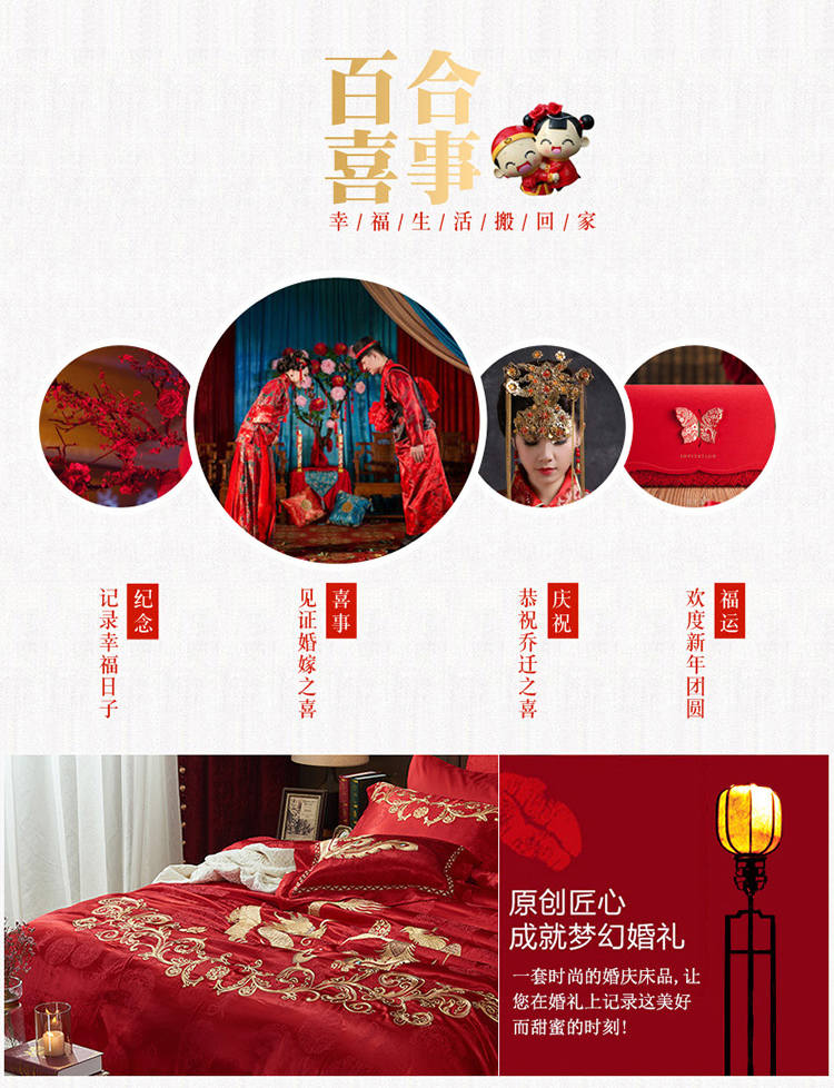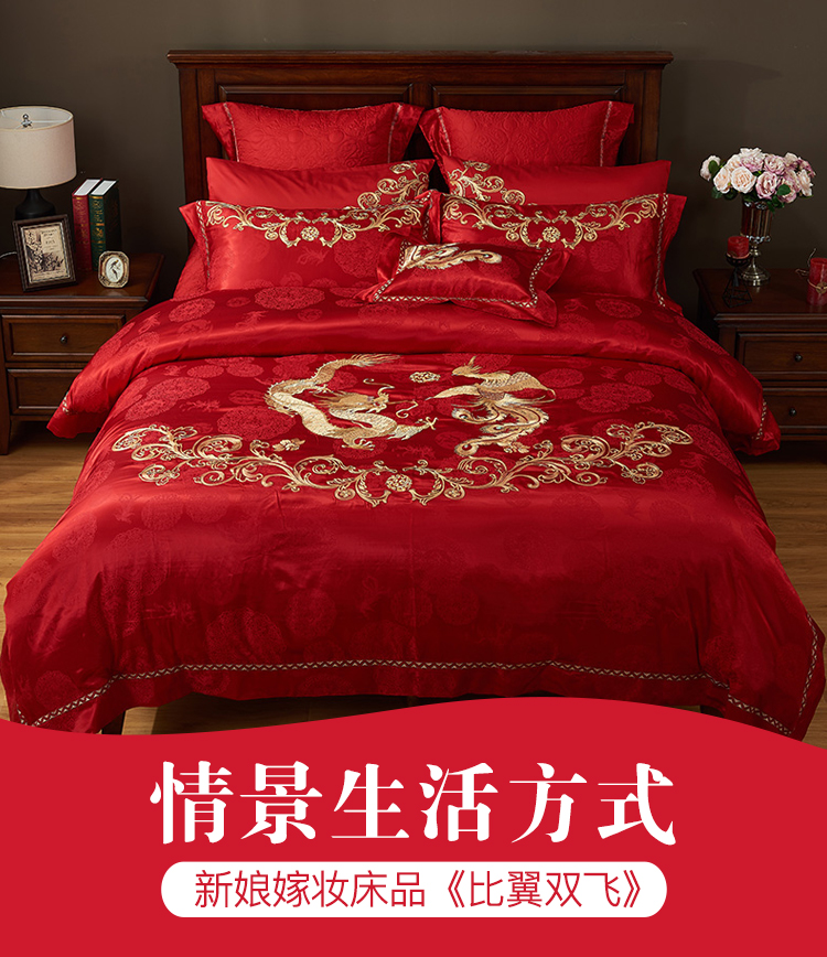 《比翼双飞》新娘嫁妆床品活性印染六件套、十件套,寓意女儿女婿恩爱一生--聚爱城