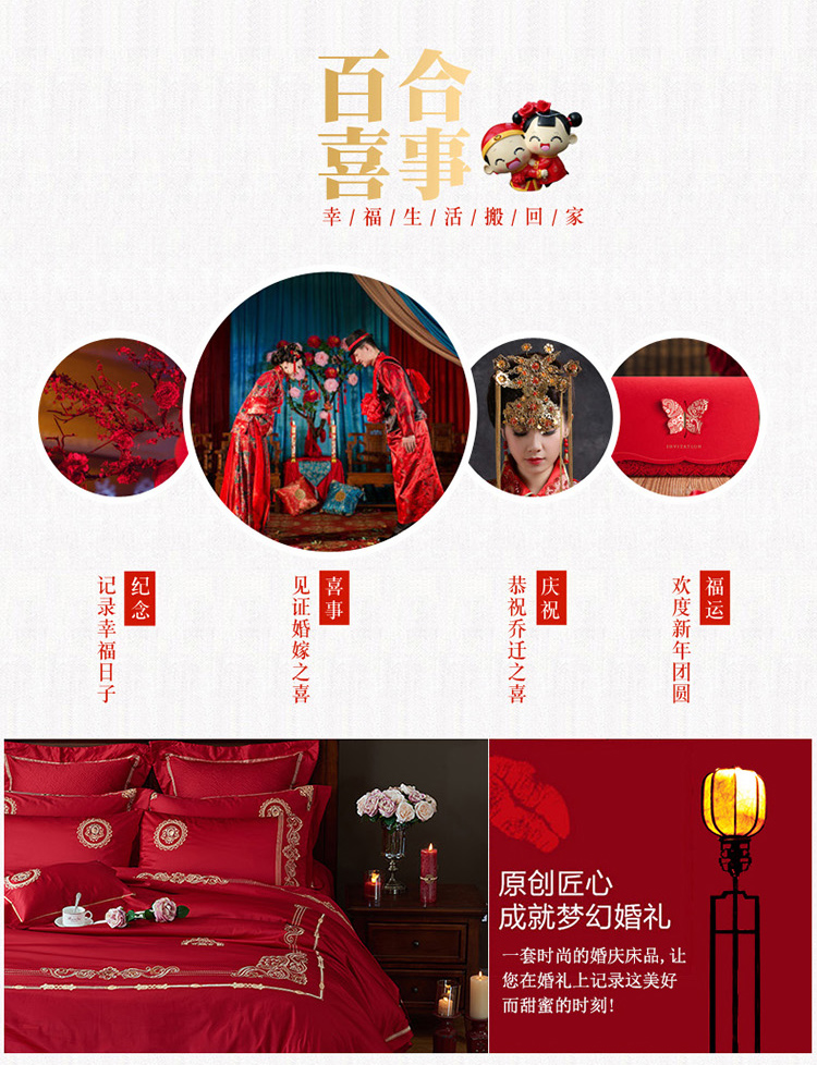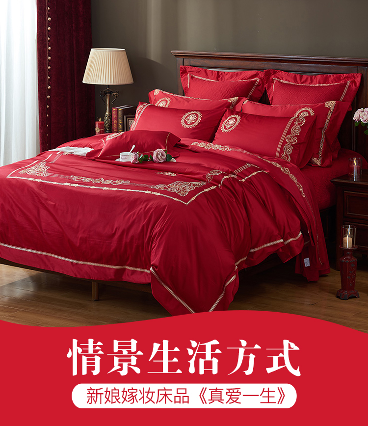 《真爱一生》新娘嫁妆床品活性印染四件套,寓意女儿一生一世美满
