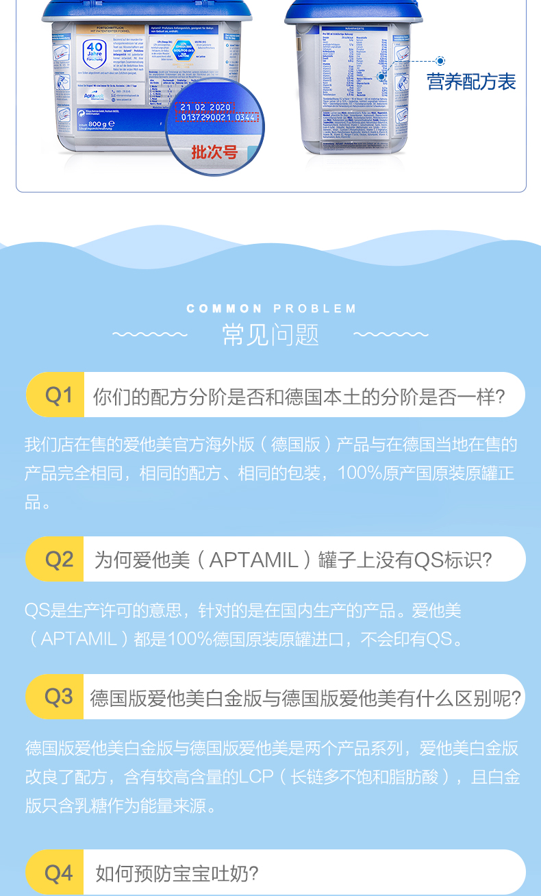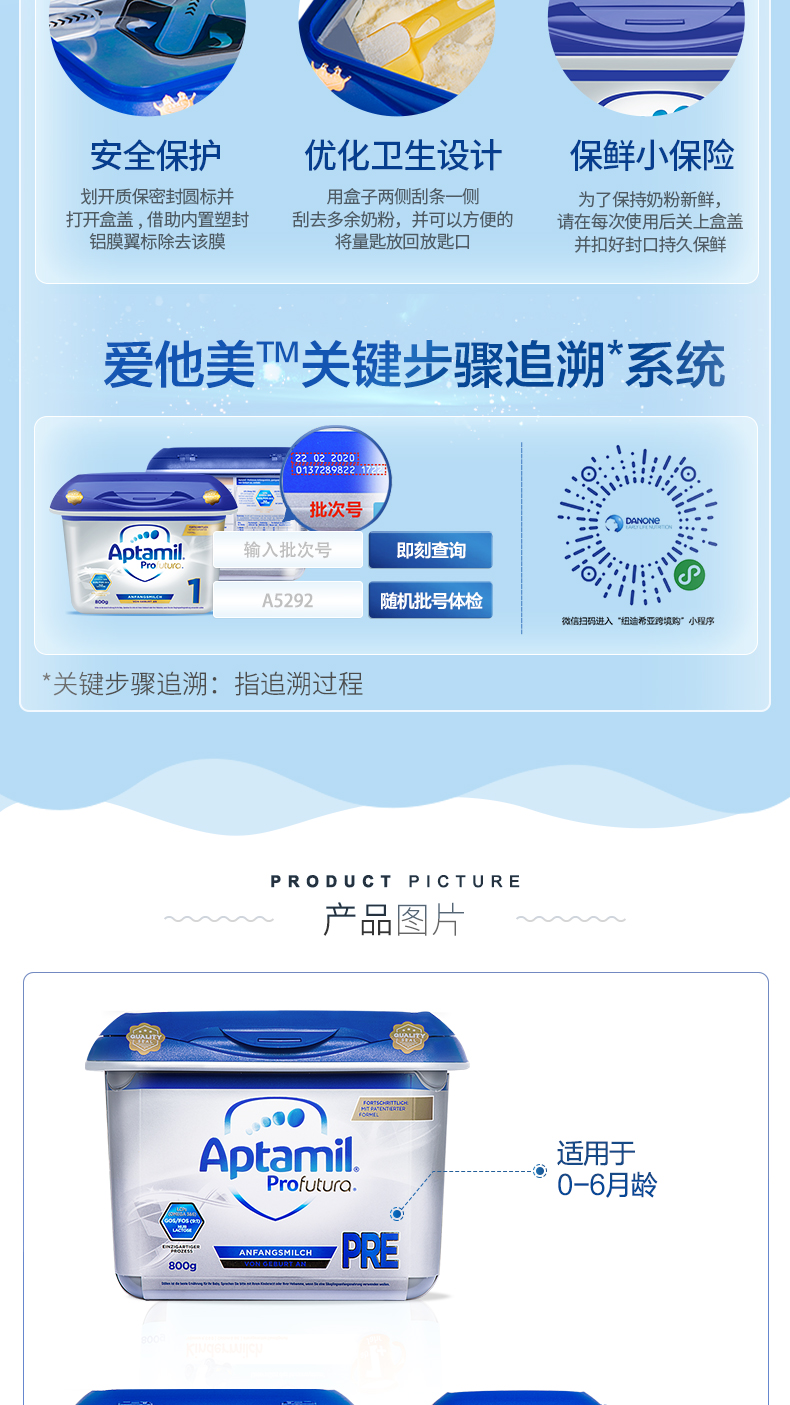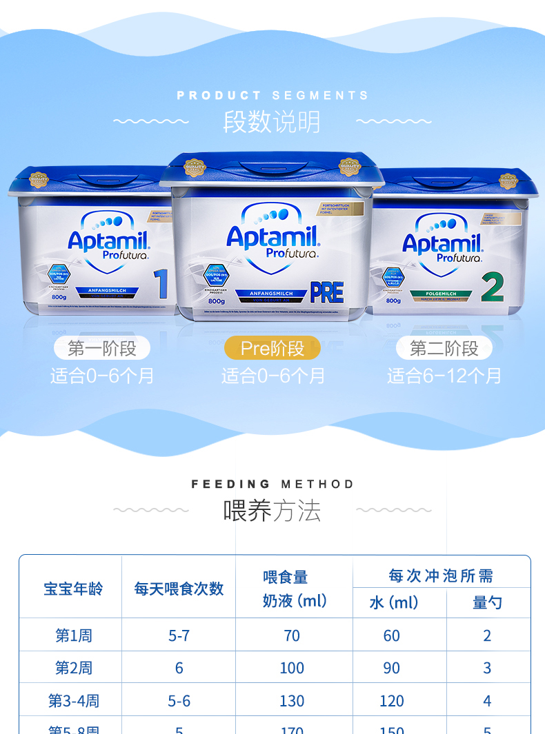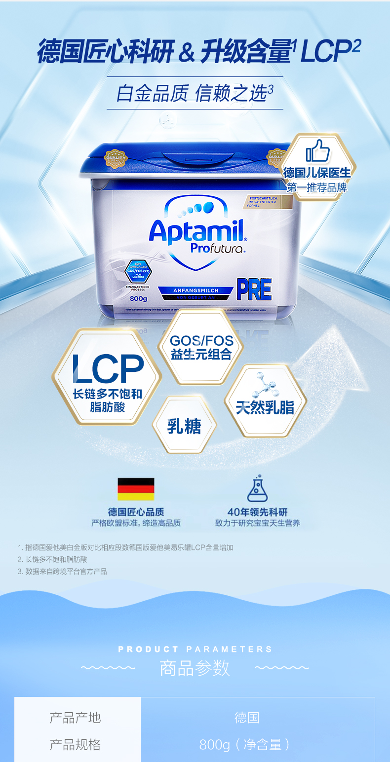 德国aptamil爱他美进口白金版婴儿配方奶粉 Pre段0-3月龄新配方灌装 奶粉800g1罐--聚爱城