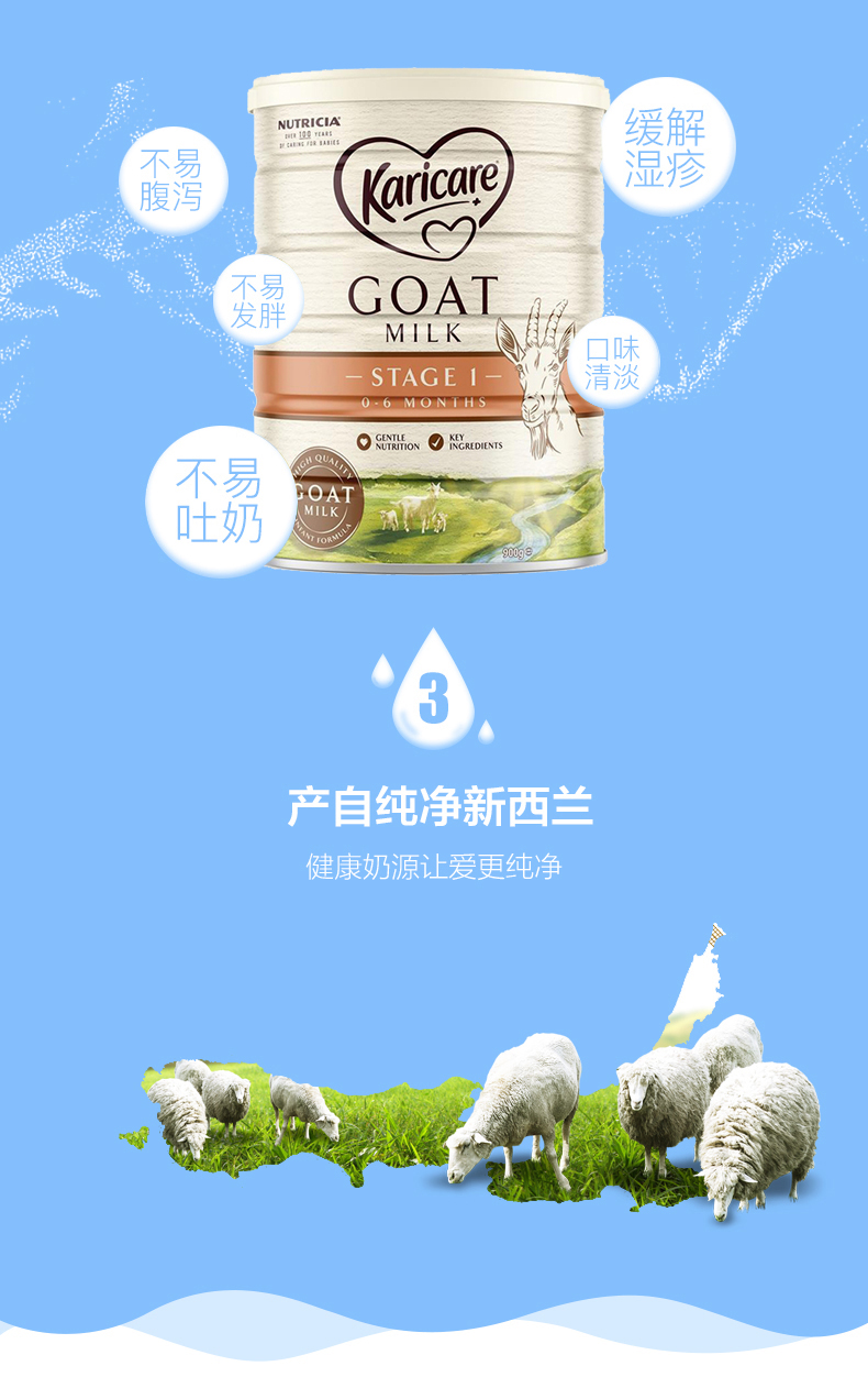 新西兰 新包装Karicare 可瑞康婴幼儿配方羊奶粉1段 900g不上火不过敏易吸收--聚爱城