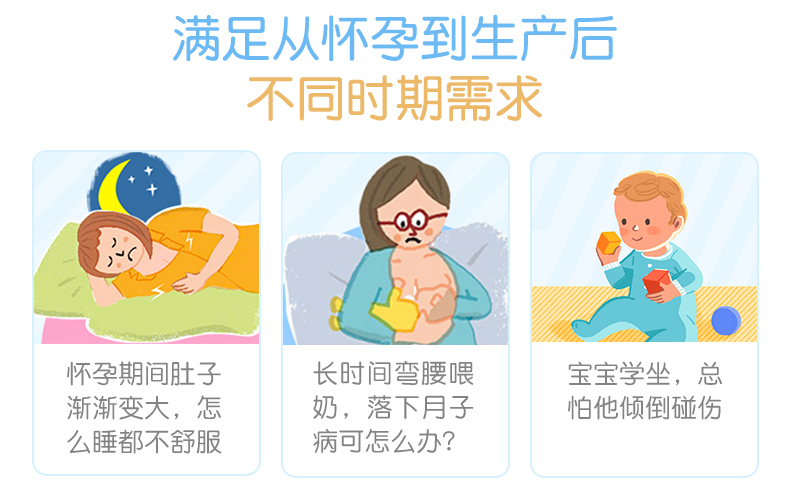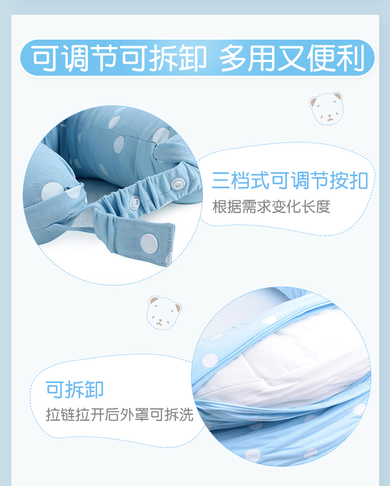 贴心设计可移动调节,增加缓冲坡型设计,呵护宝宝头型,减轻妈妈喂奶沉重