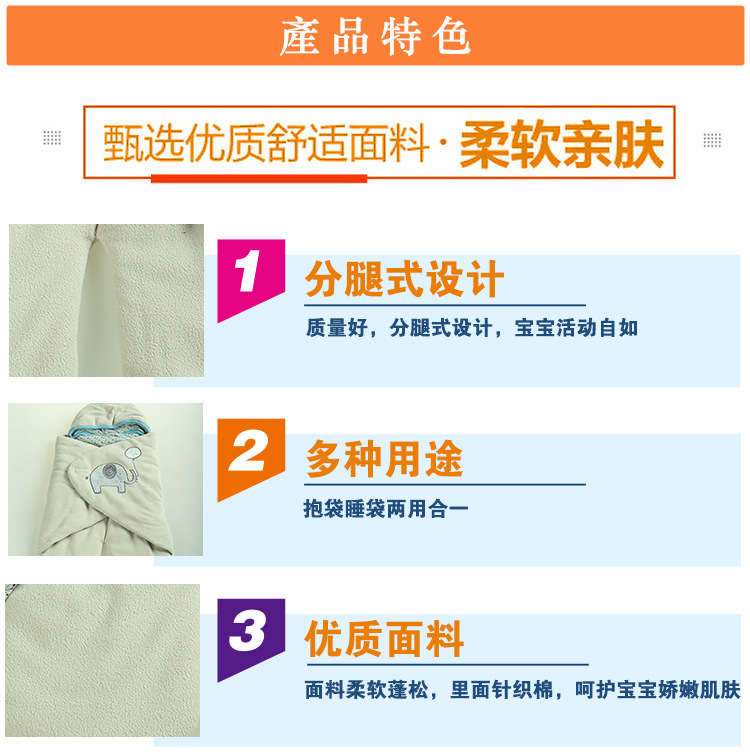 巴迪宝贝秋冬加厚婴儿防踢抱被睡袋 面料摇粒绒,里料针织棉,分腿式设计,有利于孩子生长,环保有检验证