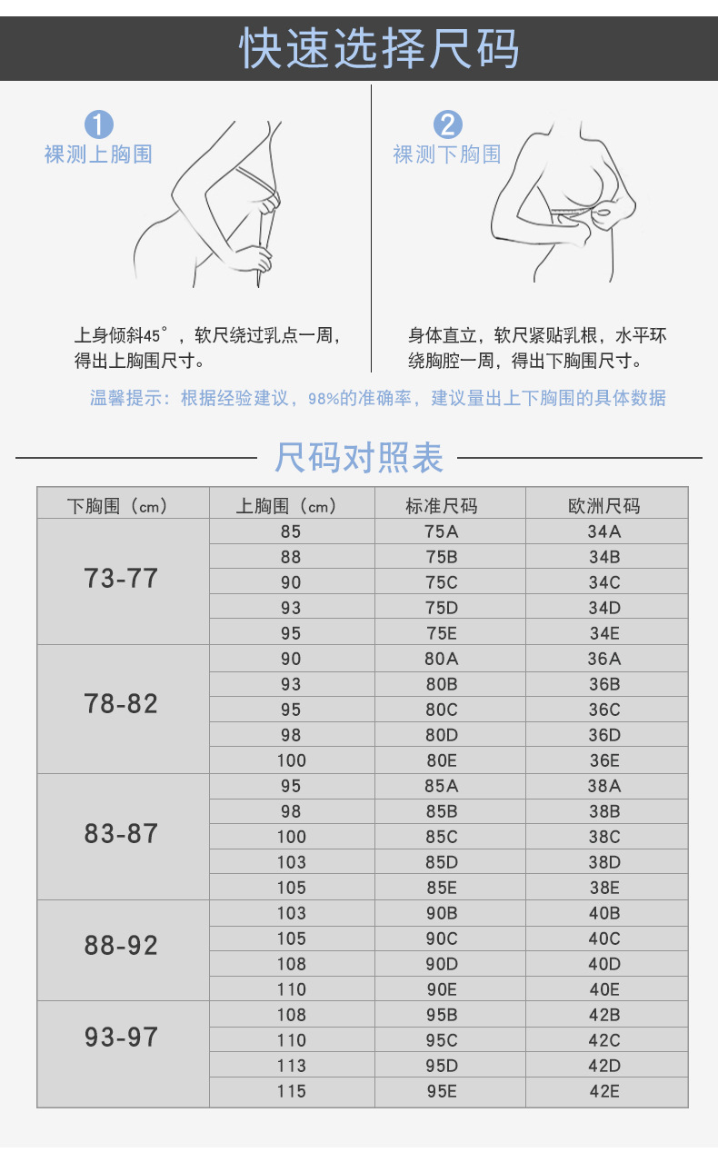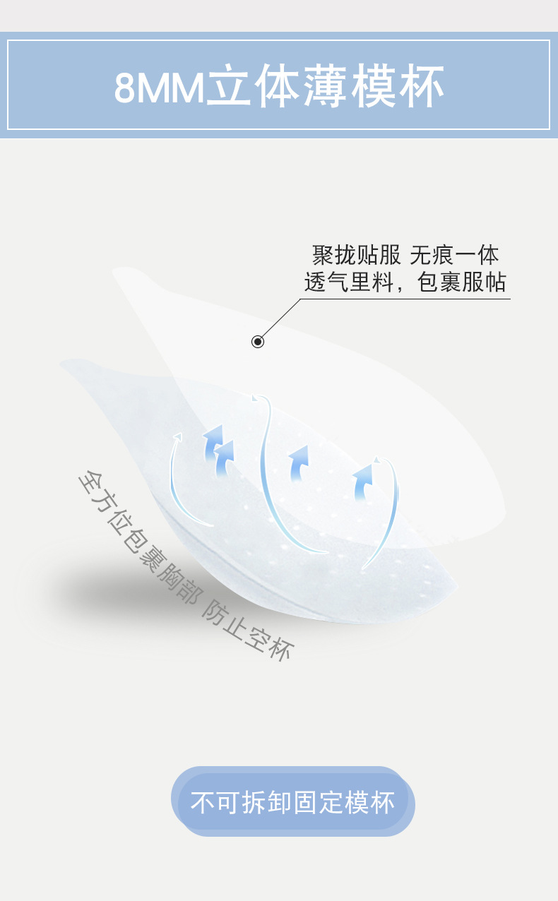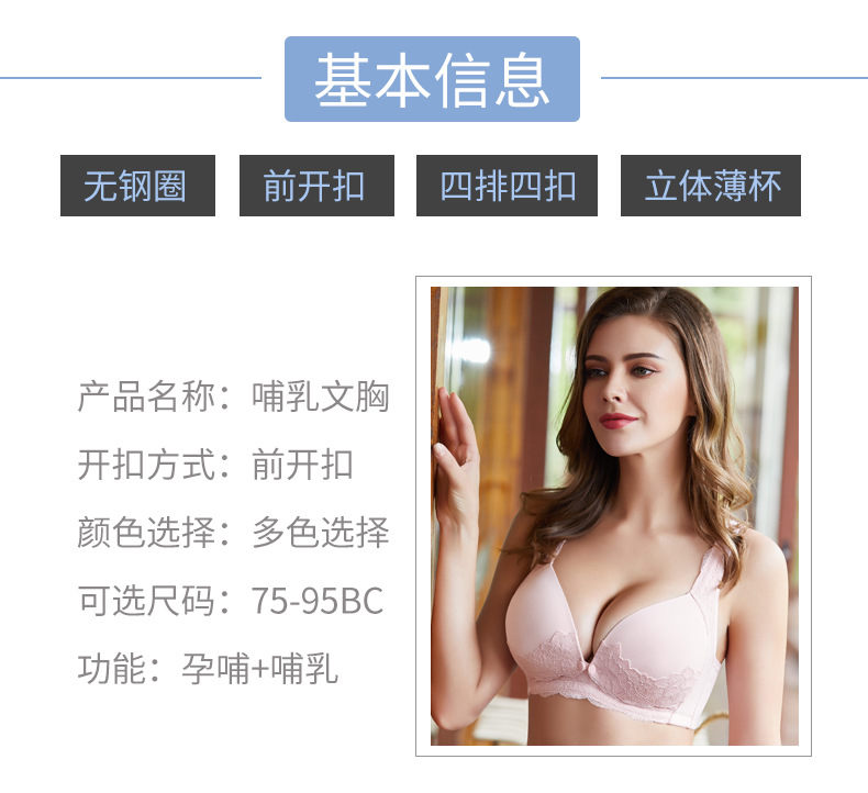 30%扩张空间,可延长2—3个罩杯。侧翼加高,防止胸部下垂。前开扣方便哺乳