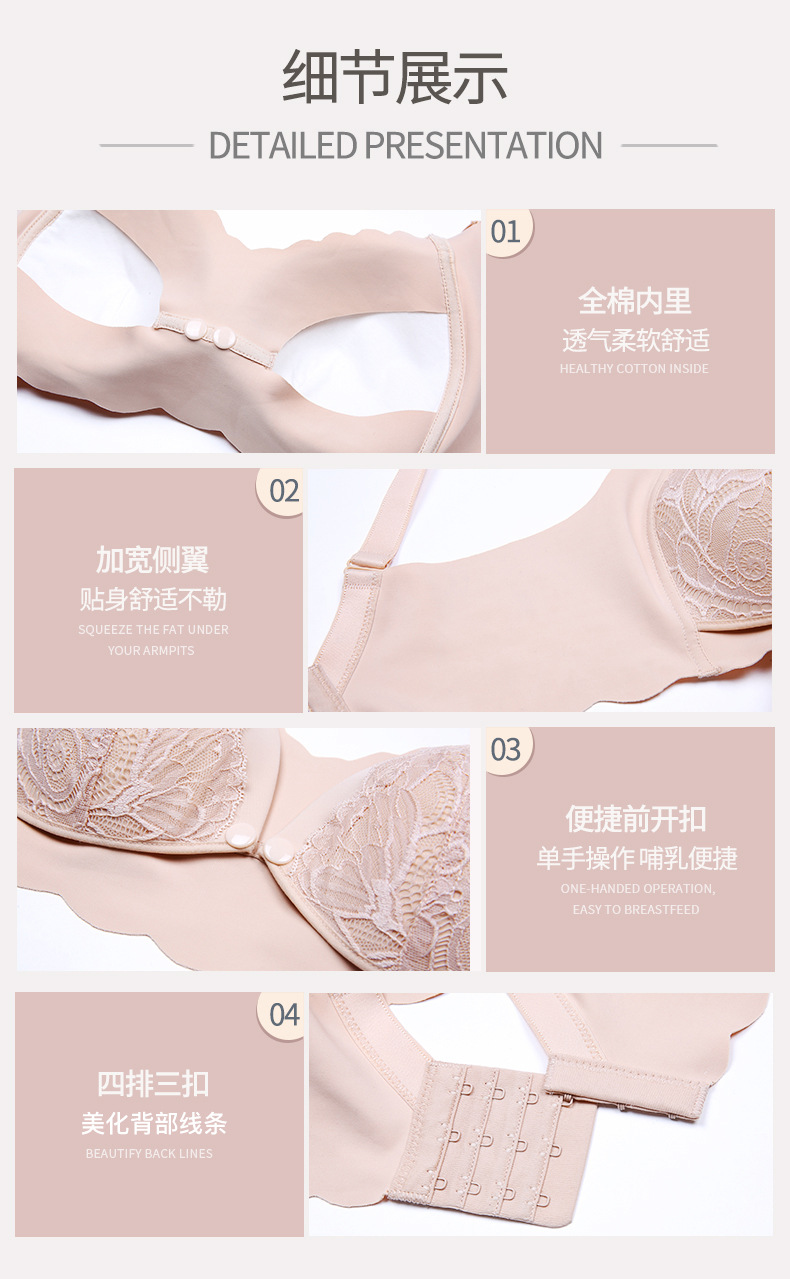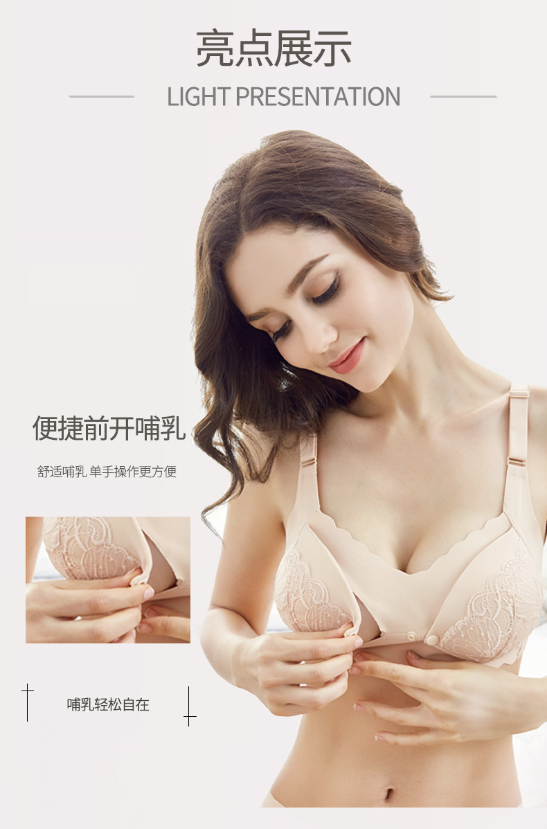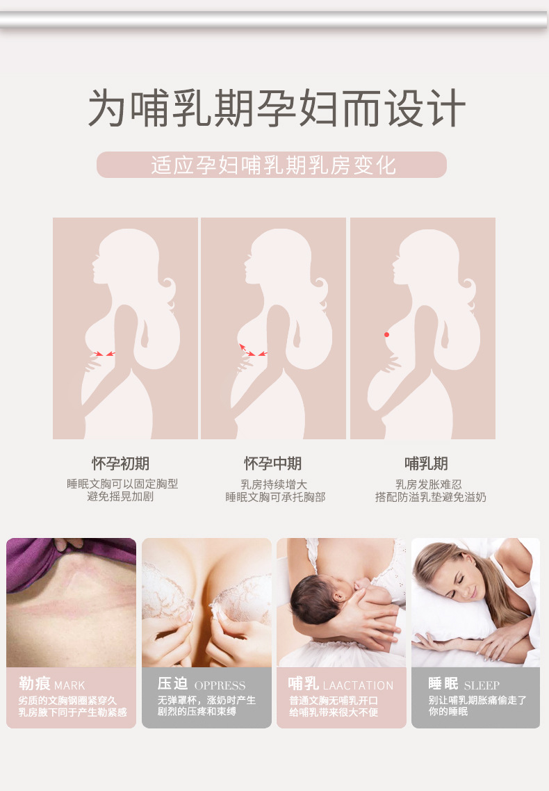 便捷前开扣方便哺乳,无痕一片式舒适不勒,U型背带缓解压力,夜间不移位