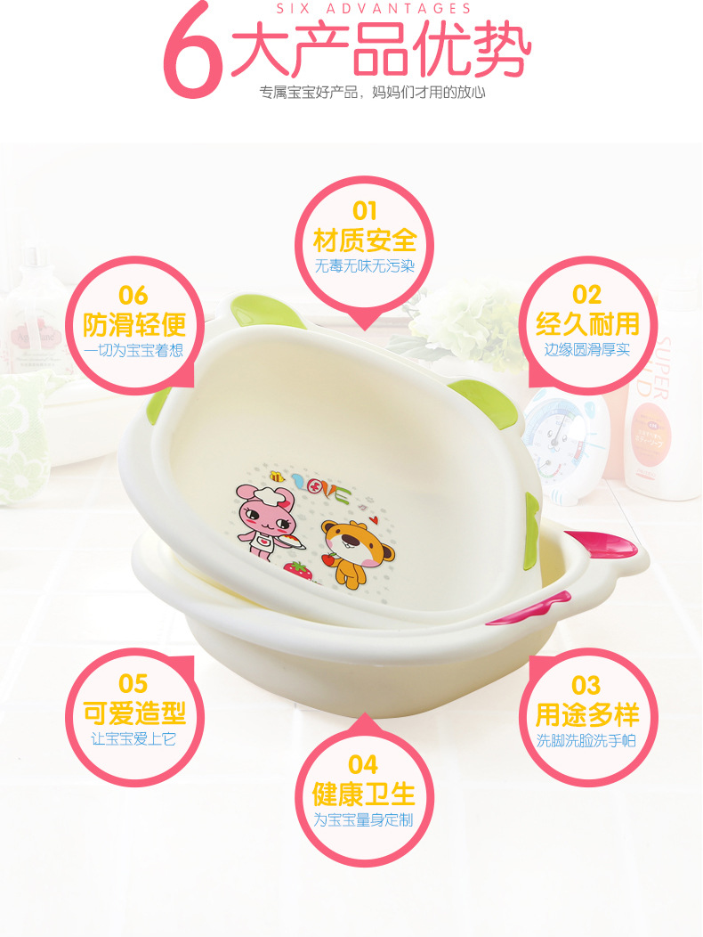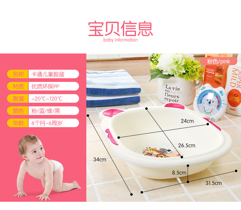 34.5*26.5*8.5cm为宝宝洗脸用水量定制的脸盆,三种颜色分开专用,全身华润呵护婴儿