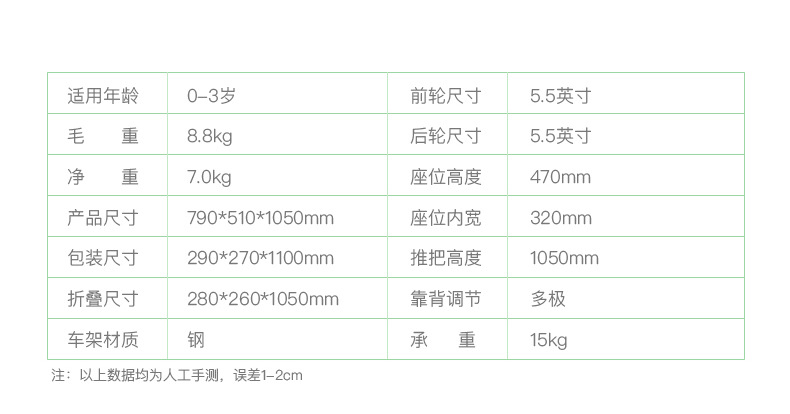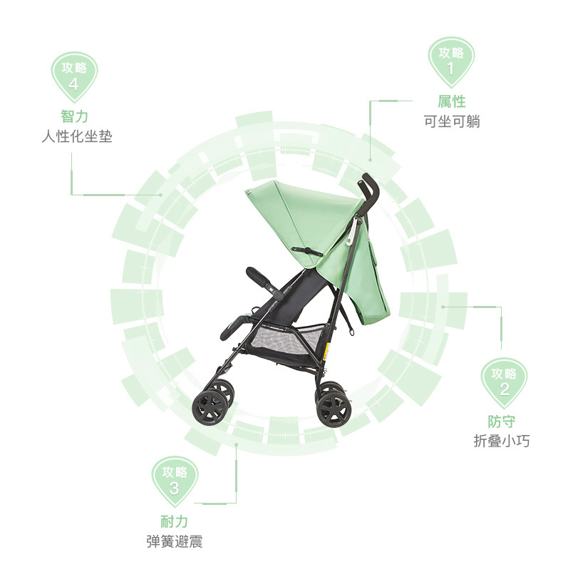 靠背可坐可躺,前轮内置弹簧避震,透气天窗,折叠便捷不占空间出行方便
