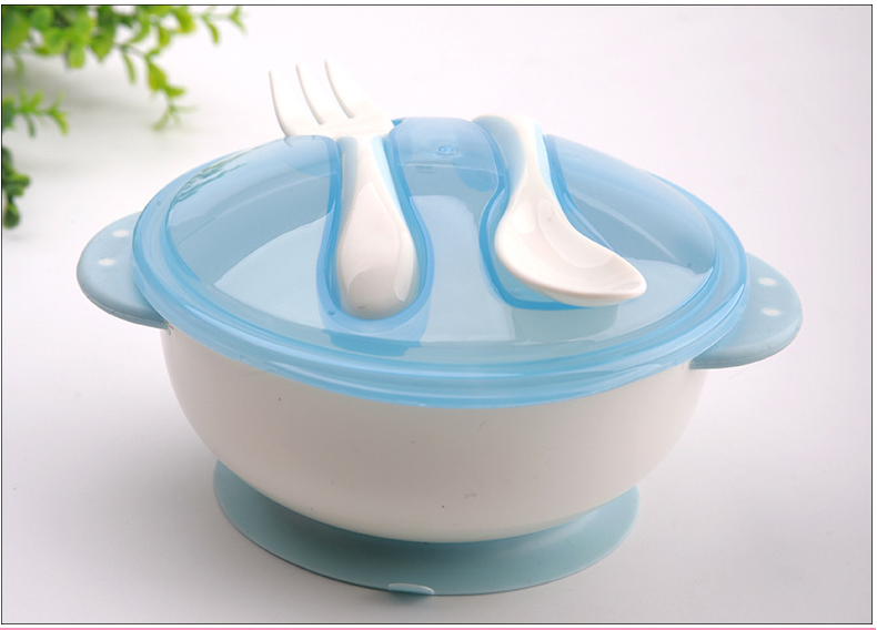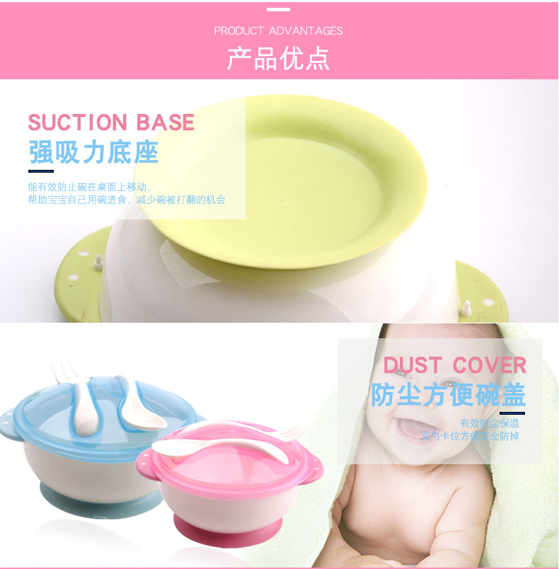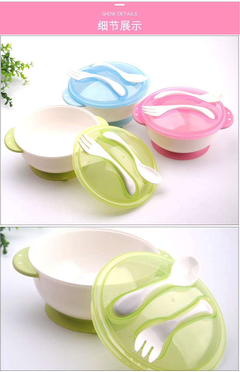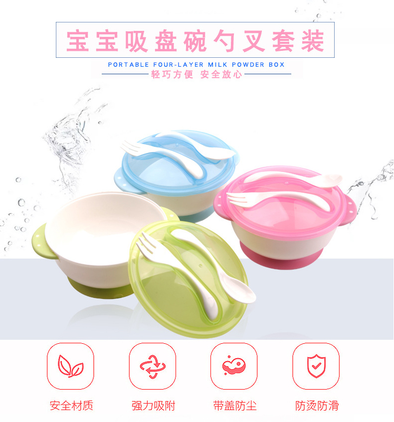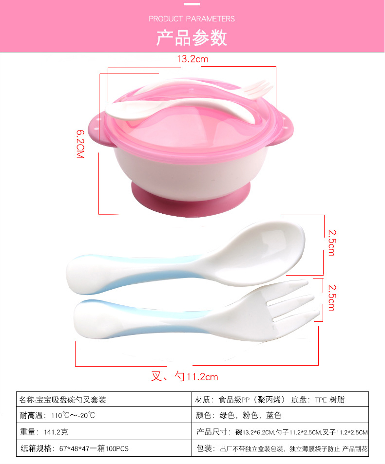 宝宝吸盘碗勺叉套装,粉色、蓝色、绿色三色,专为初学进食宝宝设计