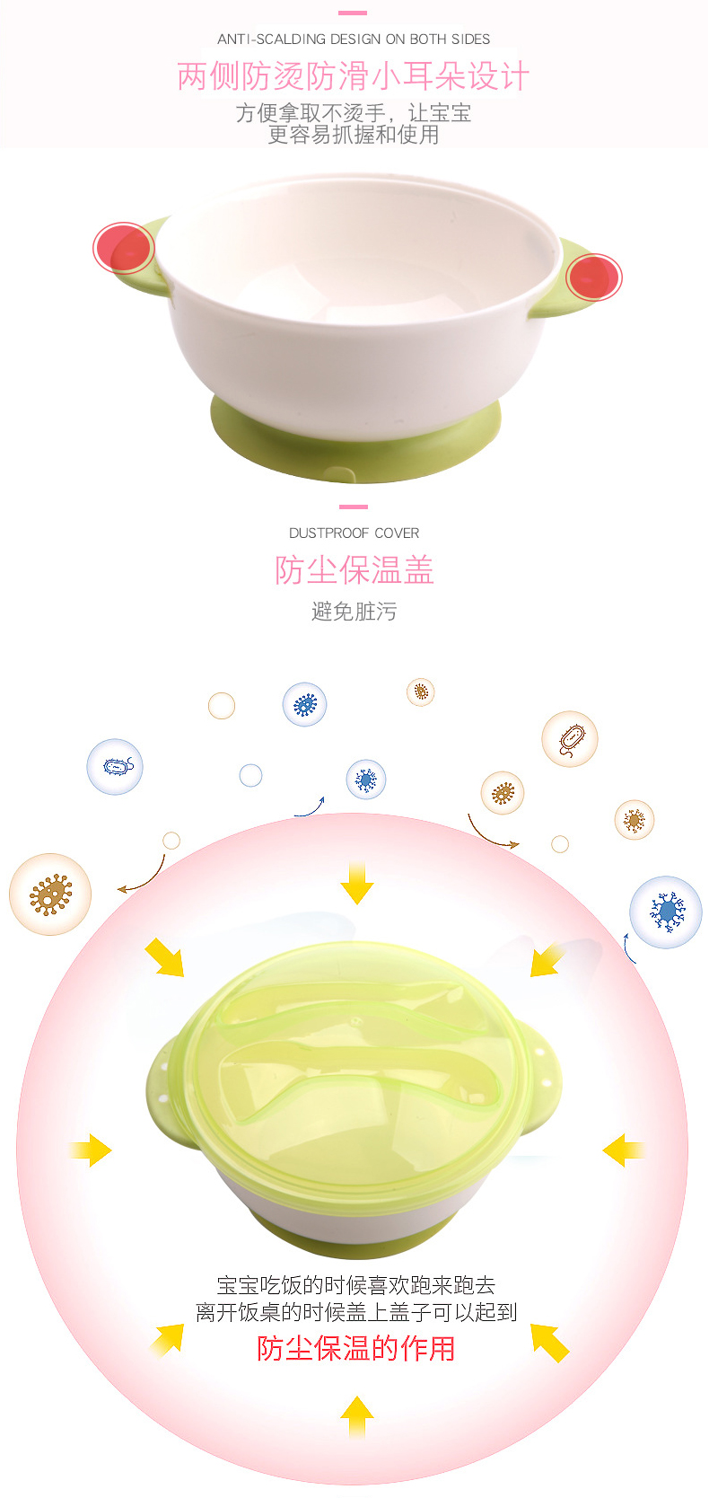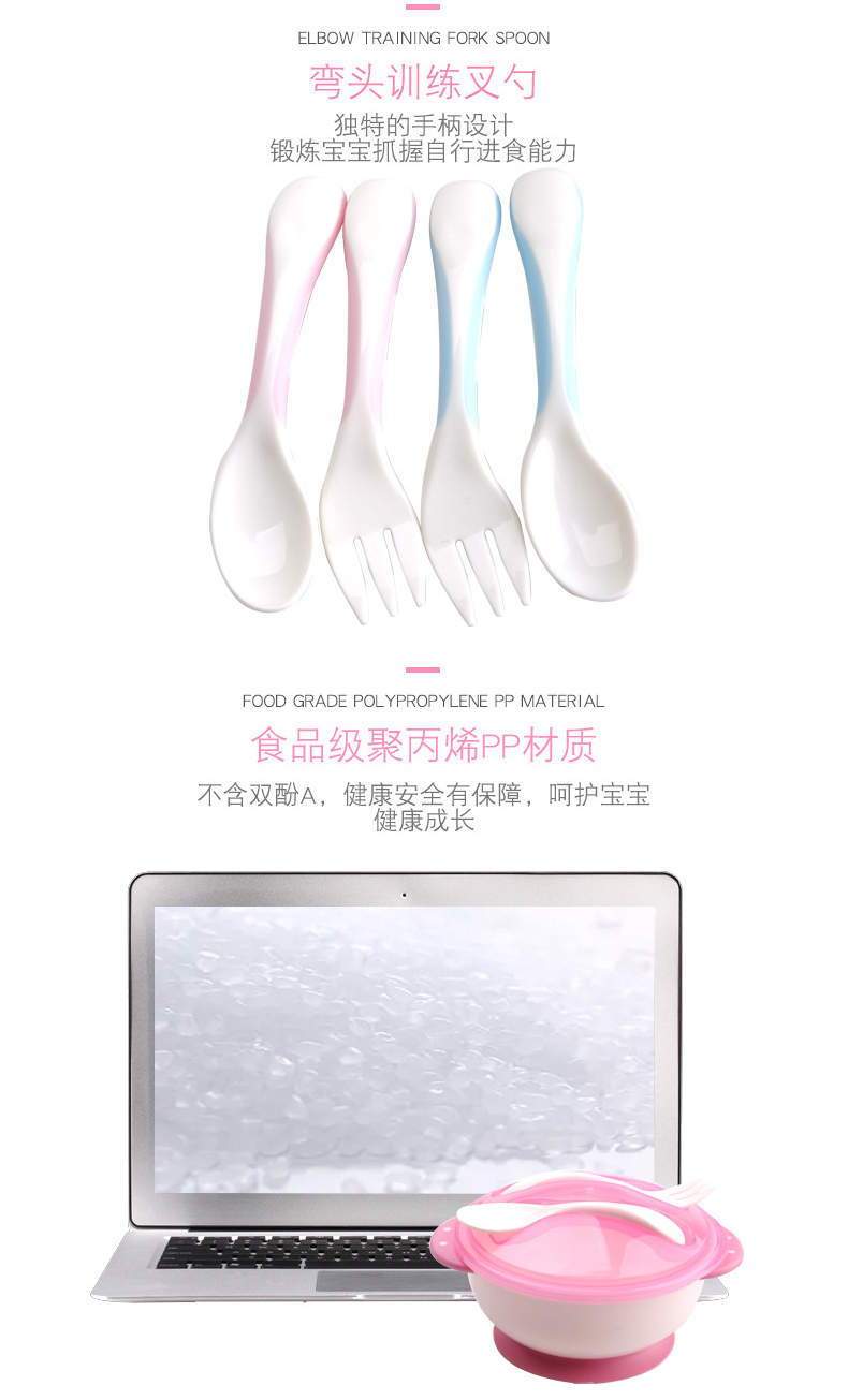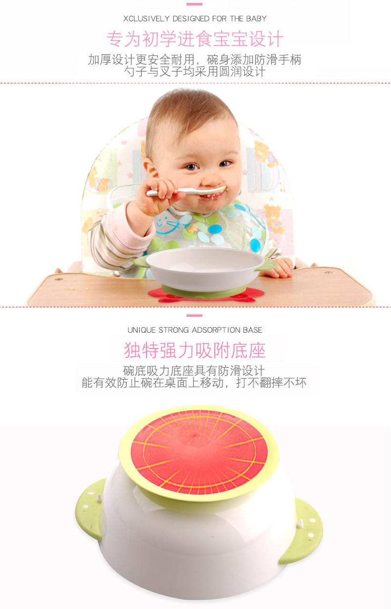 宝宝吸盘碗勺叉套装,粉色、蓝色、绿色三色,专为初学进食宝宝设计--聚爱城