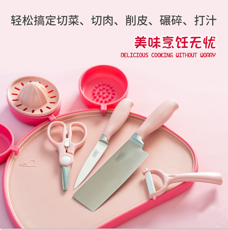 包含:大刀+小刀+剪刀+削皮刀+刀架+菜板+研磨器3个+原装彩盒--聚爱城
