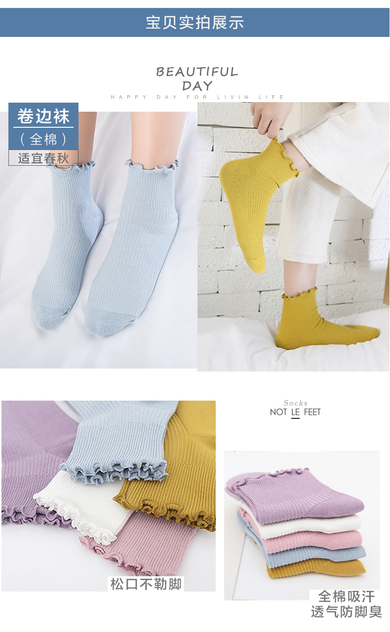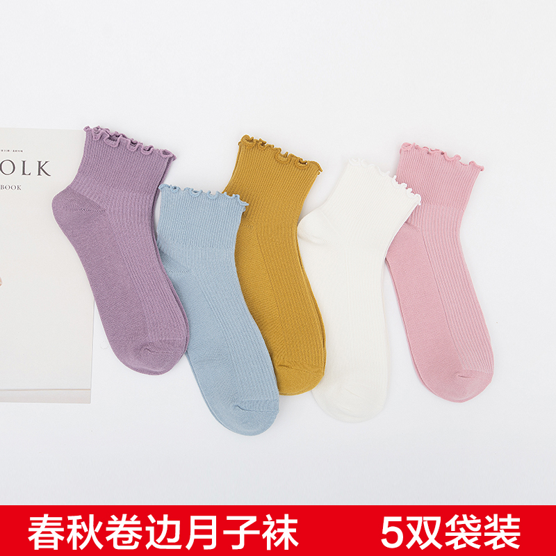 浪莎女短袜学院风韩版全棉运动袜素色6双,全网统一价49.9,点评抵金5元