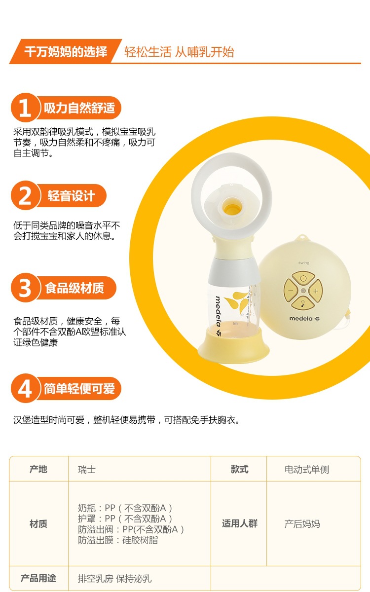 全新升级舒悦版,双韵律电动吸乳更呵护妈妈奶液不回流,安静仅46.7分贝