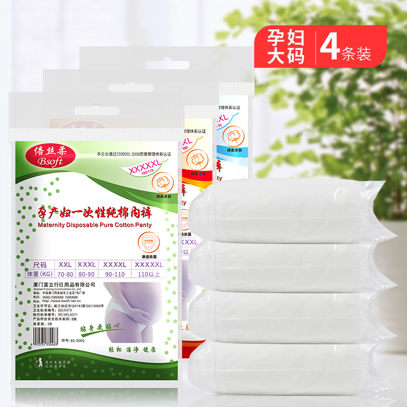 倍丝柔每包4条单条独立包装,天然精梳棉,高腰收腹,EO灭菌产妇开袋即用