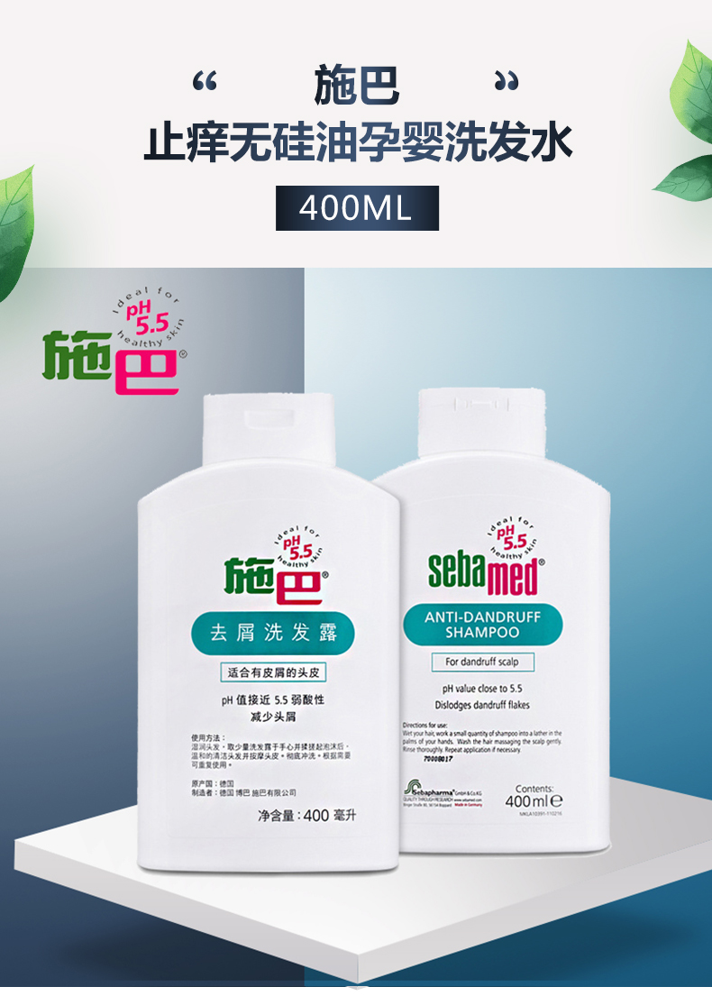 施巴去屑400ml止痒无硅油孕婴洗发水,全网统一价:97.00,点评抵金5元--聚爱城