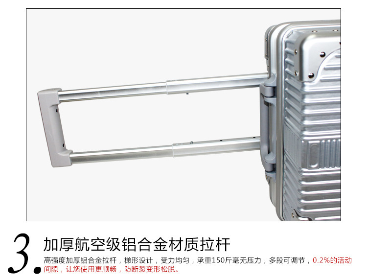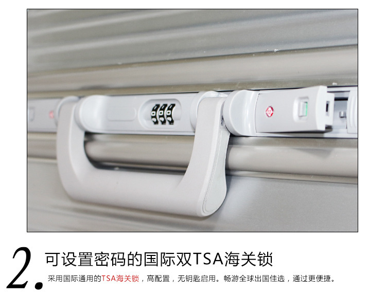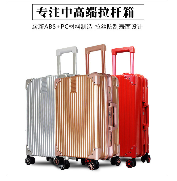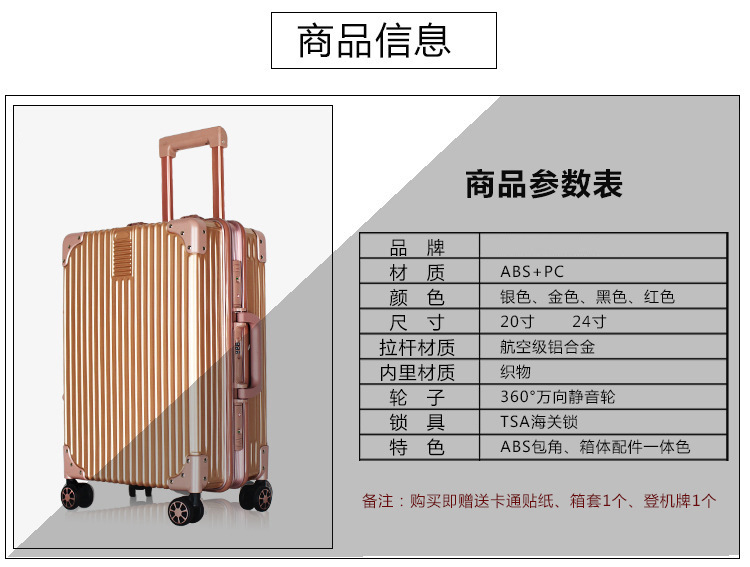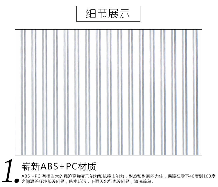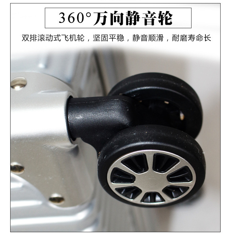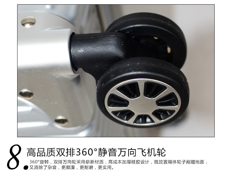 崭新ABS+PC材料制造,拉丝防刮表面设计,牢固抗压。海关锁可托运,360度万向静音轮