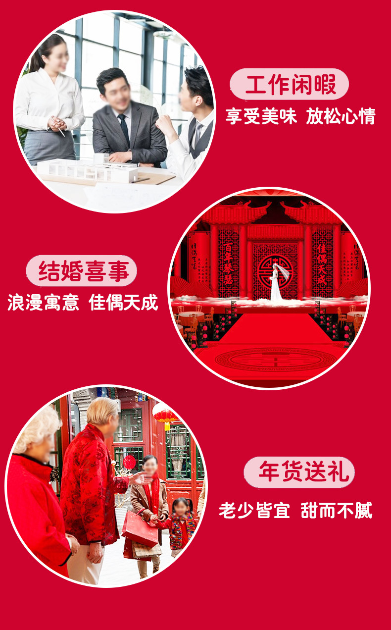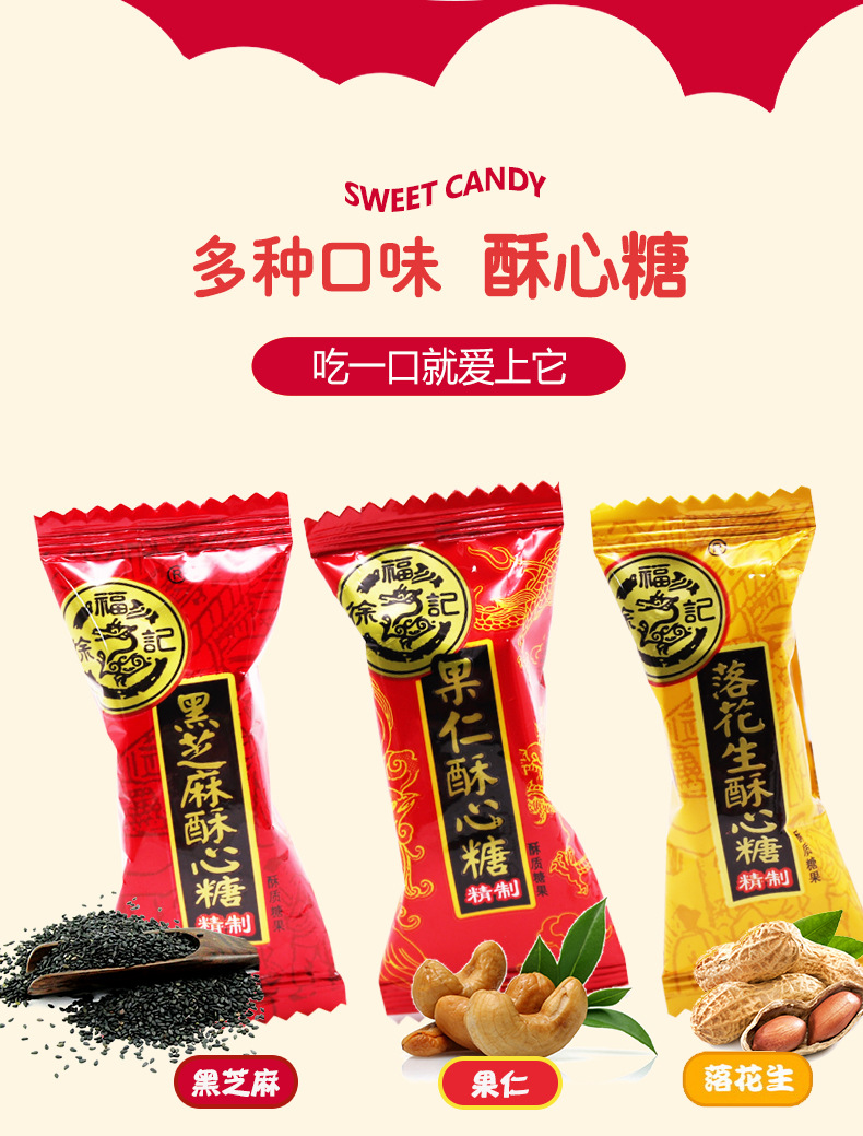 每斤大约37颗,混合口味、落花生婚庆版、黑芝麻婚庆版、果仁酥心糖可选--聚爱城
