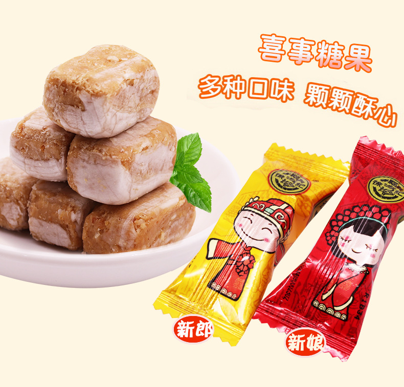 每斤大约37颗,混合口味、落花生婚庆版、黑芝麻婚庆版、果仁酥心糖可选