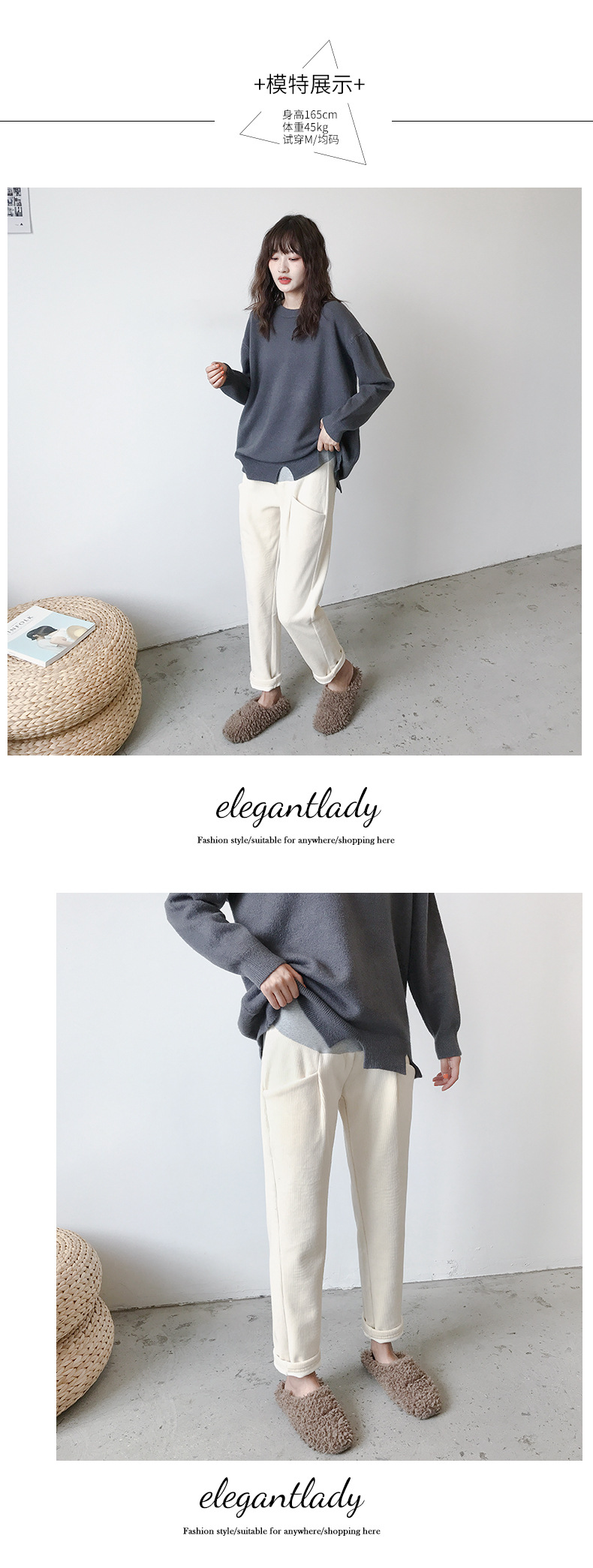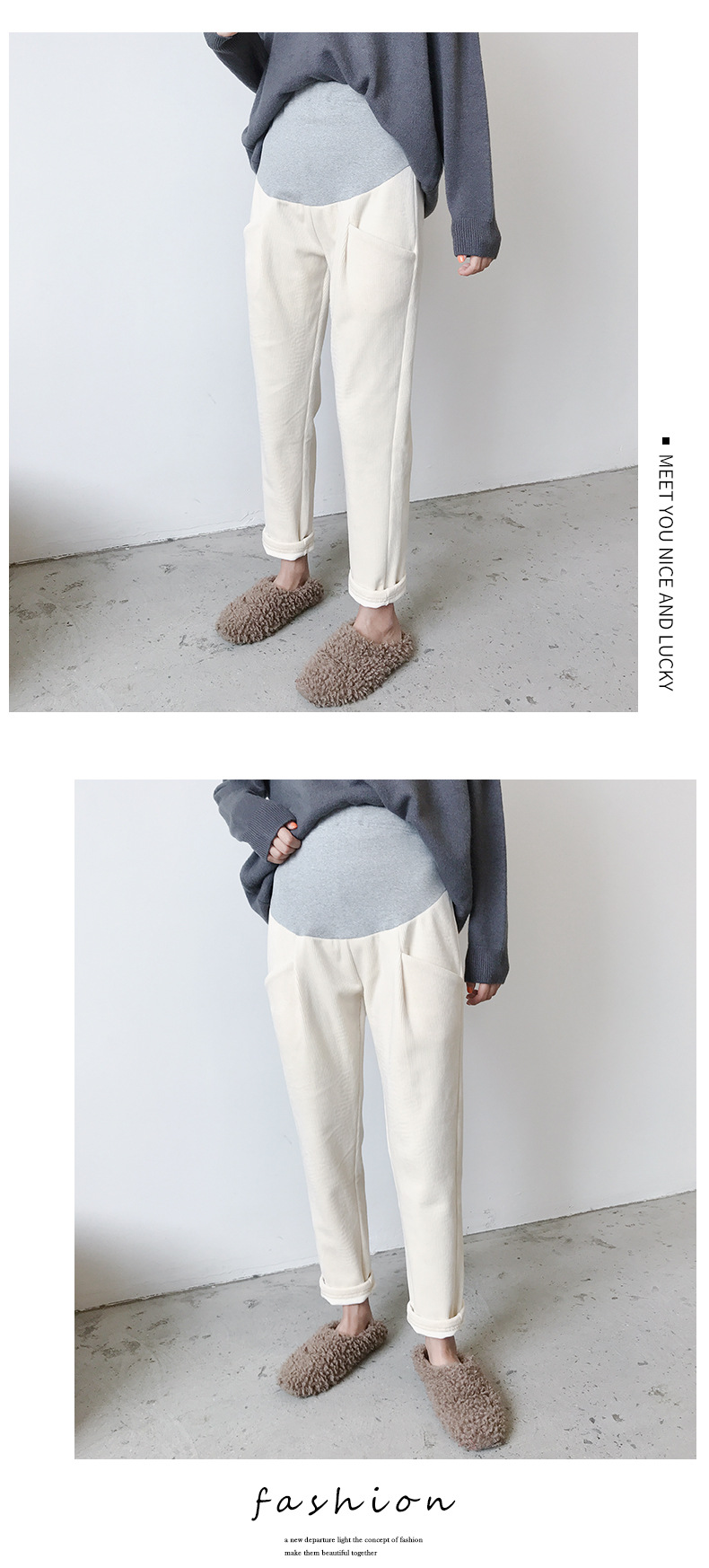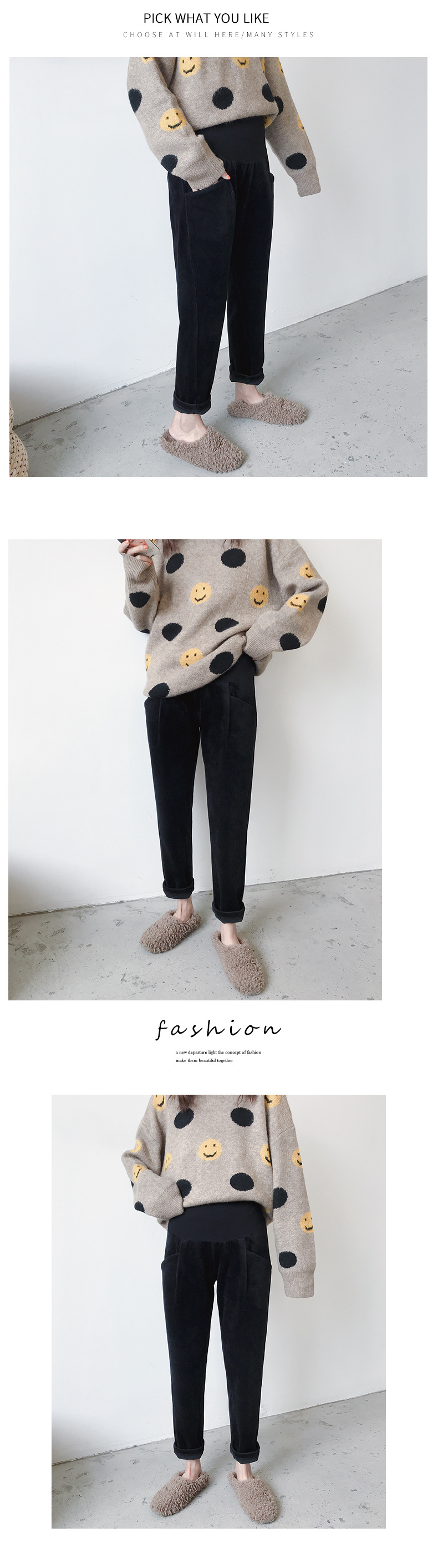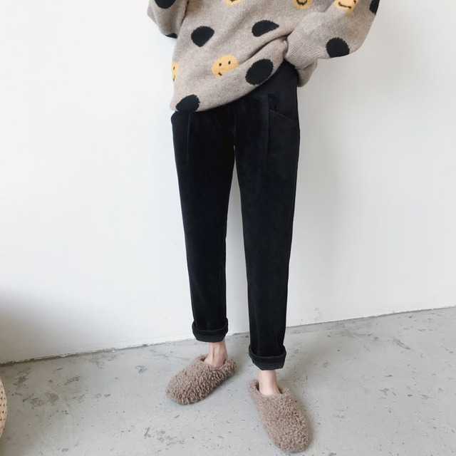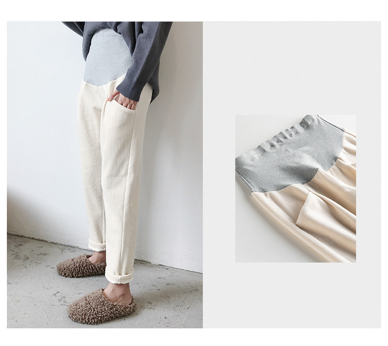 条纹灯芯绒面料孕妇直筒裤托腹裤,冬季韩版加绒加厚百搭显瘦工装裤--聚爱城