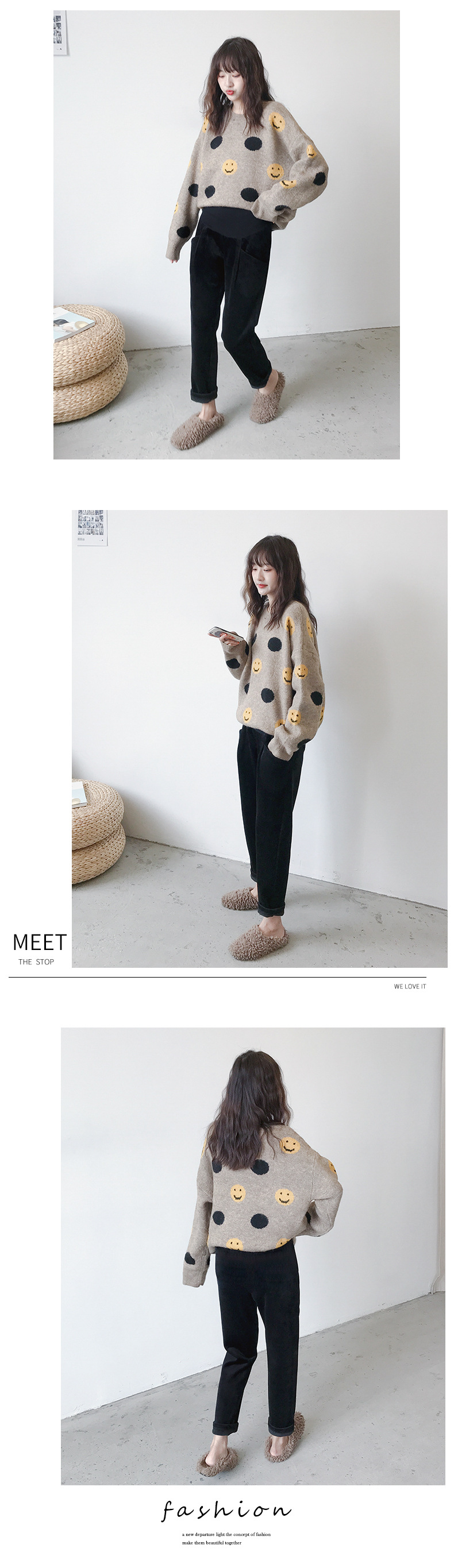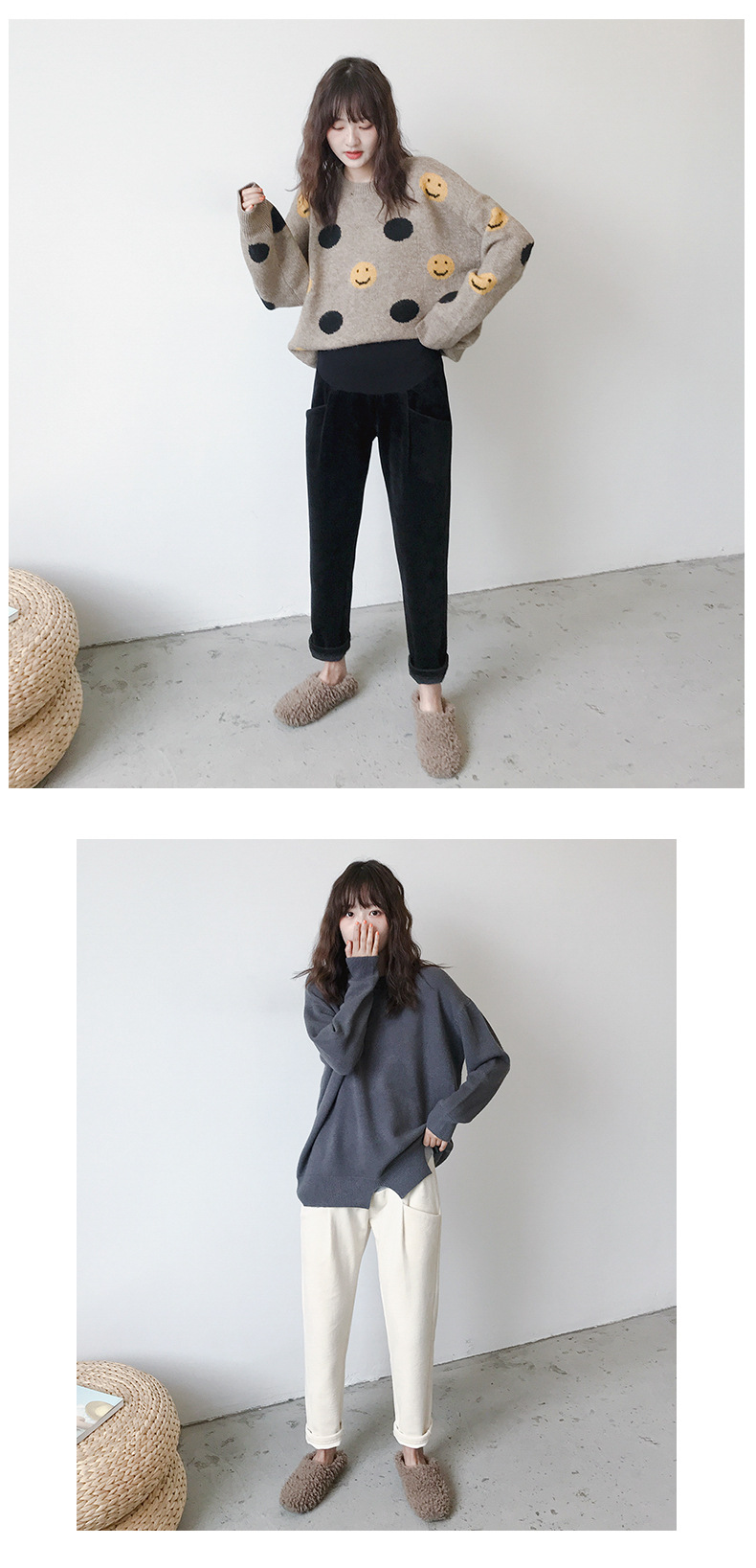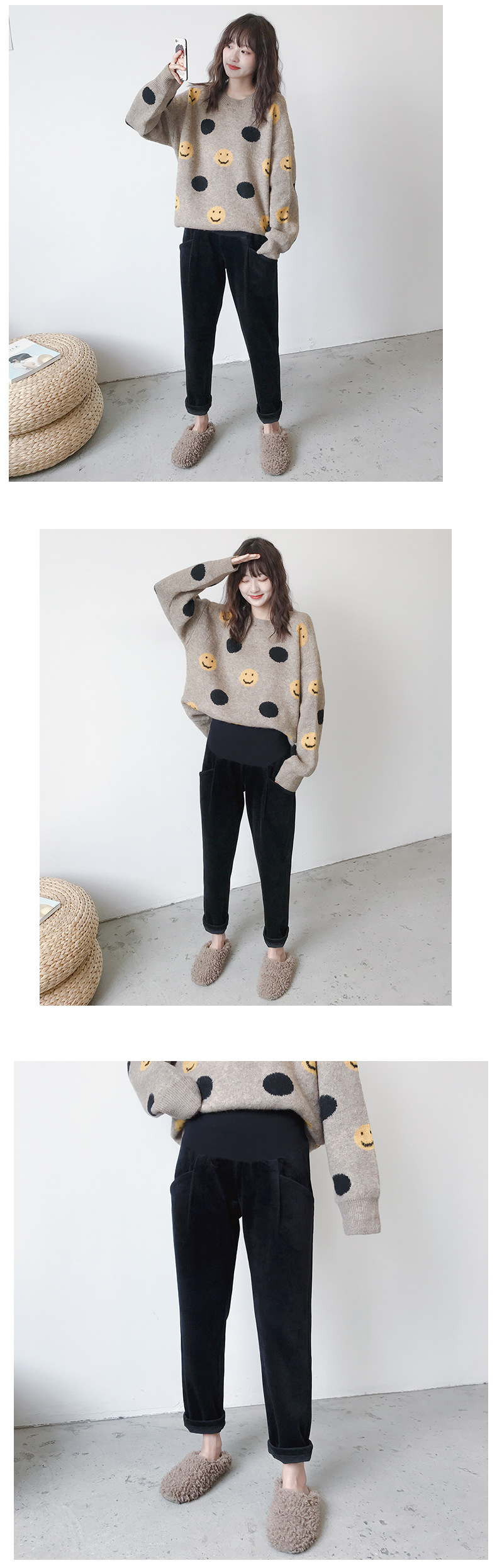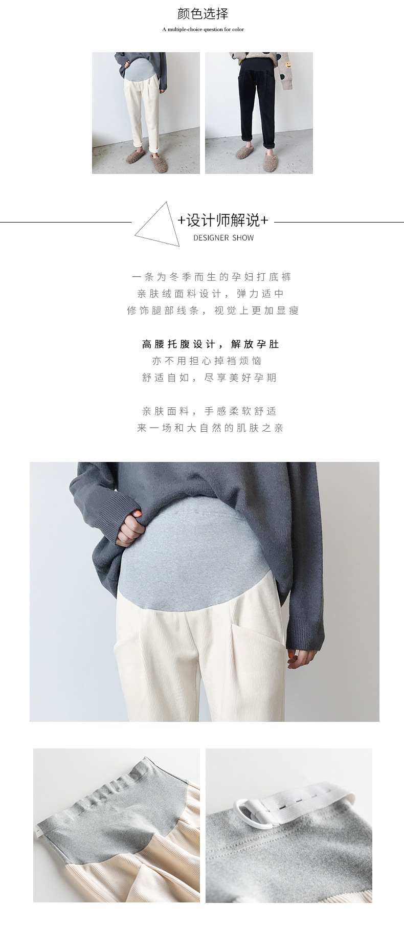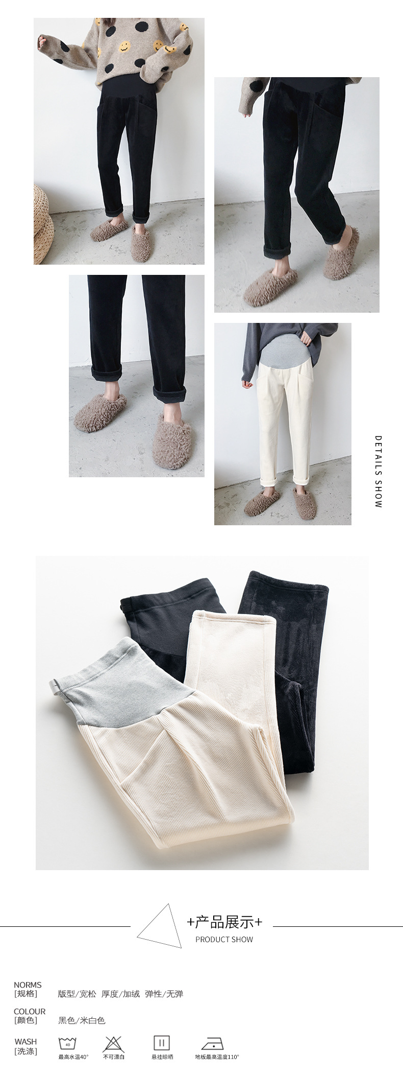 条纹灯芯绒面料孕妇直筒裤托腹裤,冬季韩版加绒加厚百搭显瘦工装裤