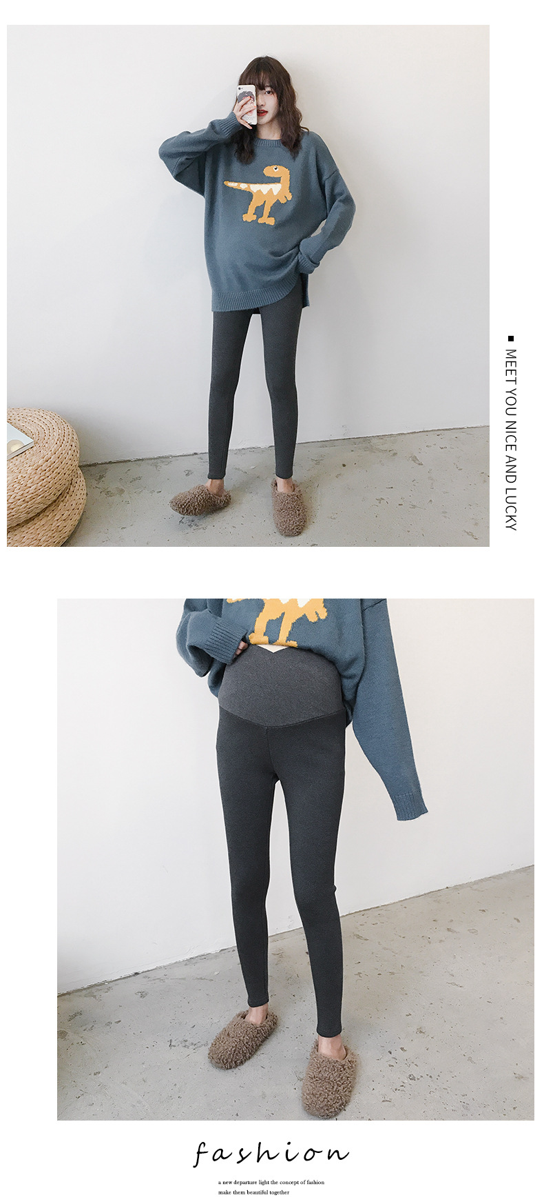 新款孕妇装韩版加绒加厚孕妇裤,冬季双重托腹裤百搭打底裤御寒保暖