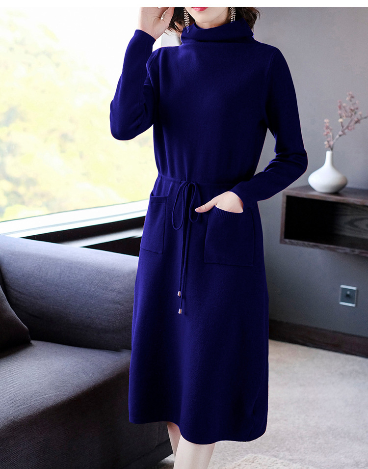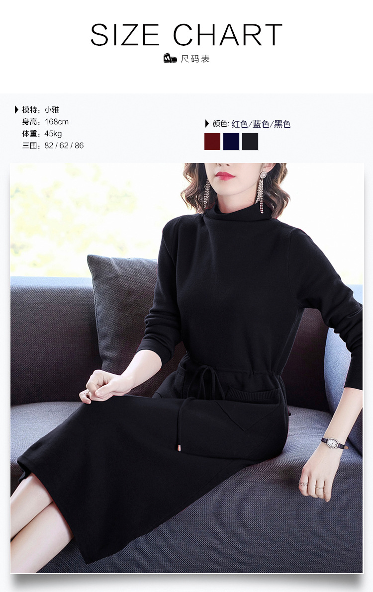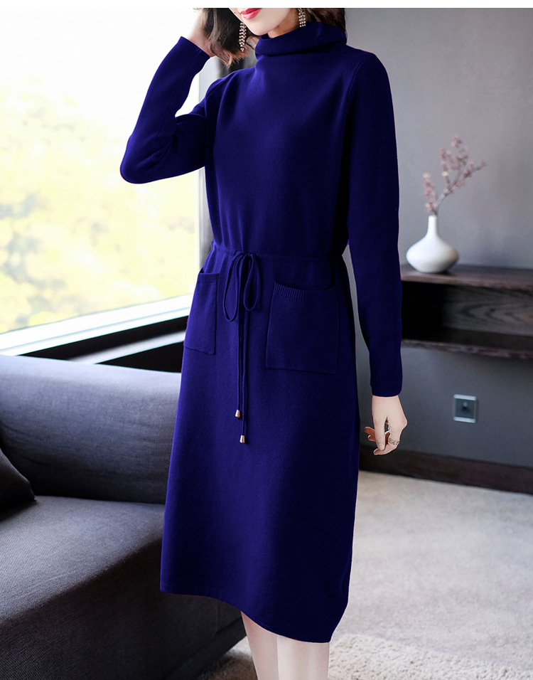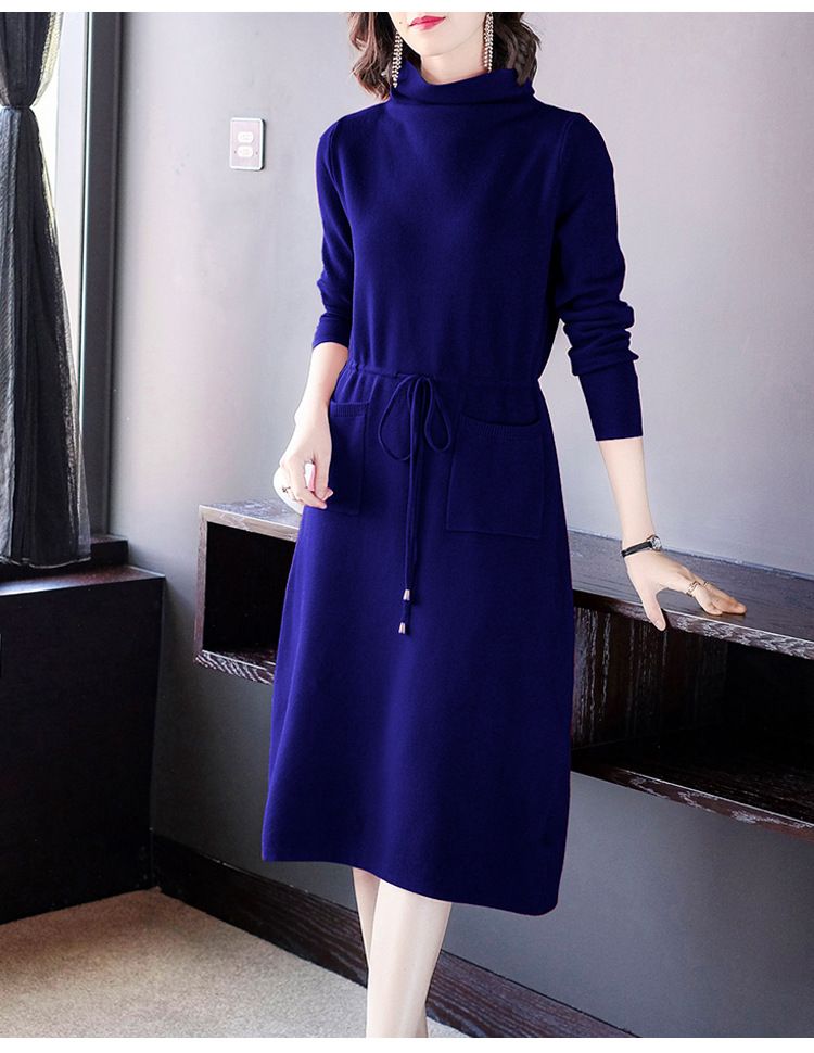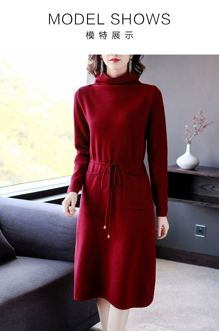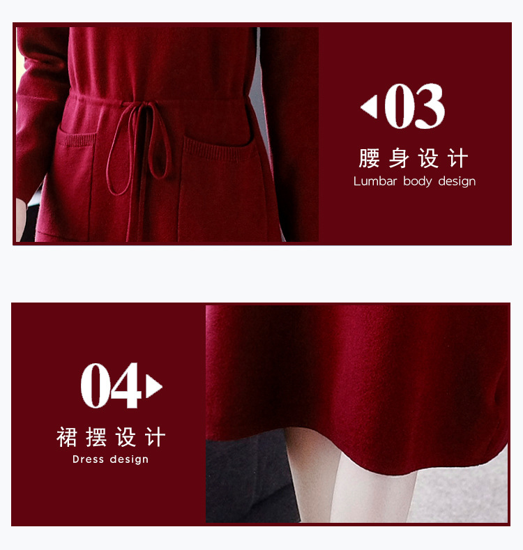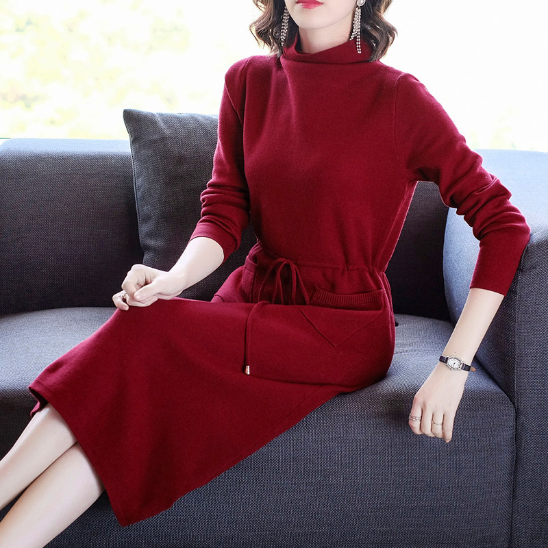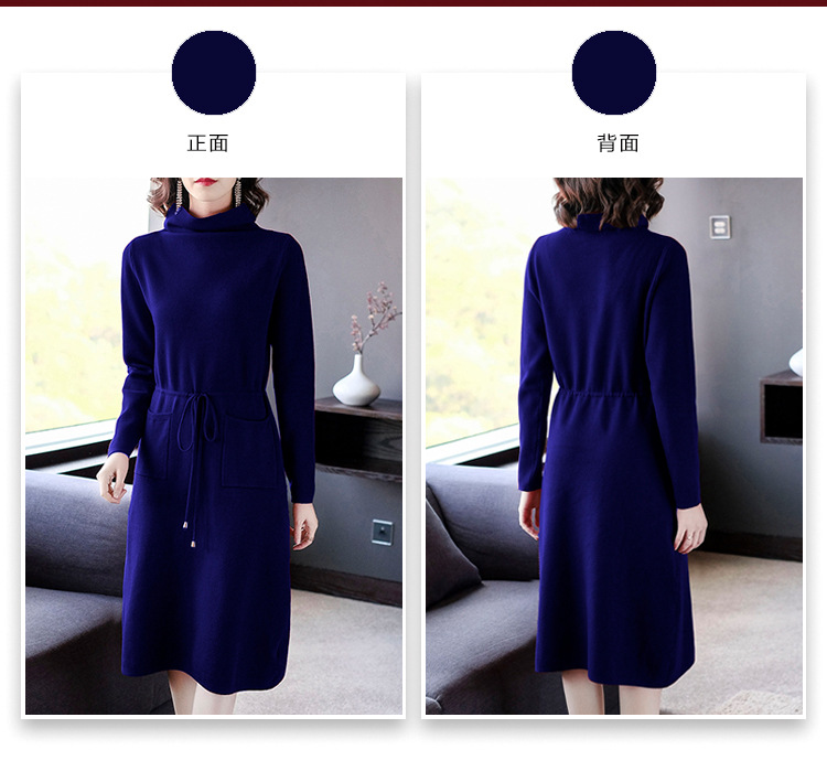高端洋气长袖针织裙子毛衣裙中长款,秋冬裙新款女加厚贵夫人连衣裙--聚爱城