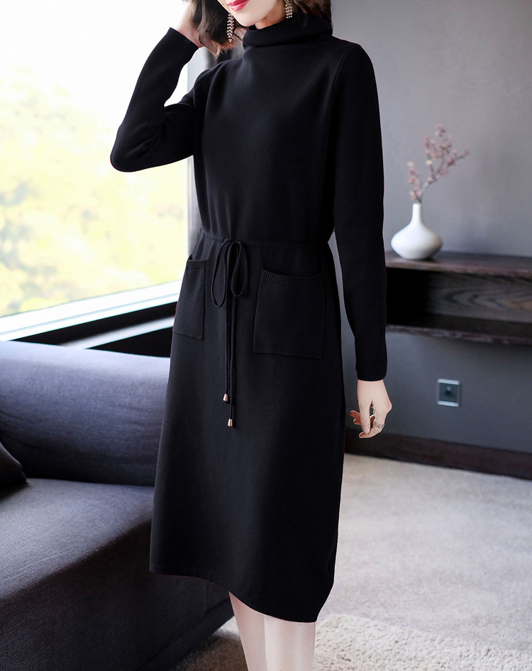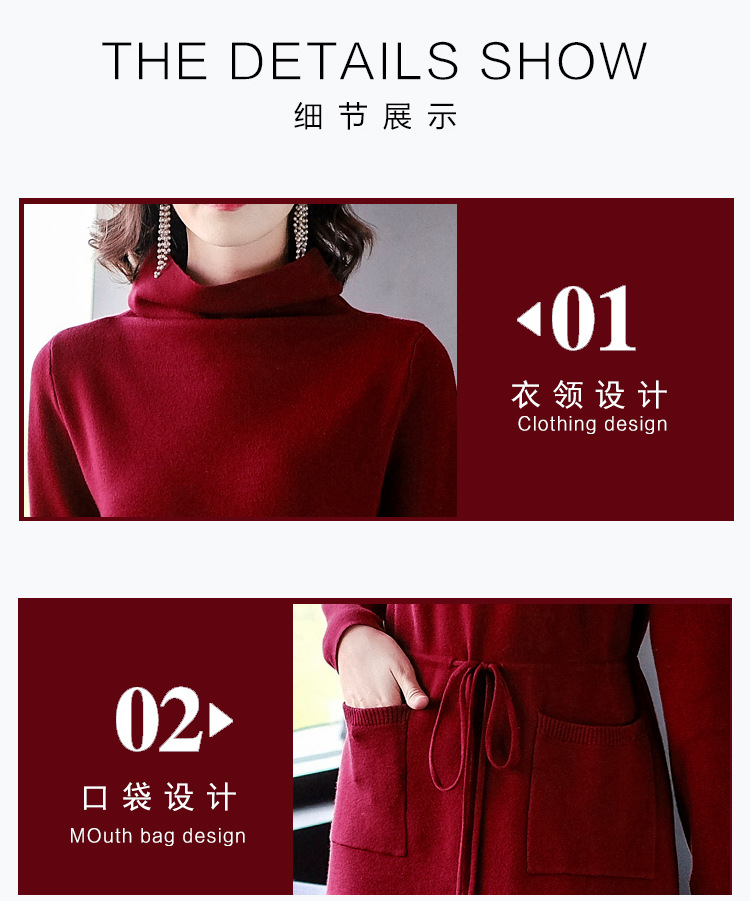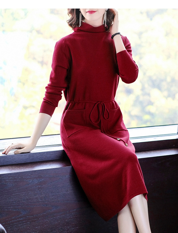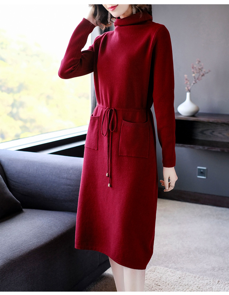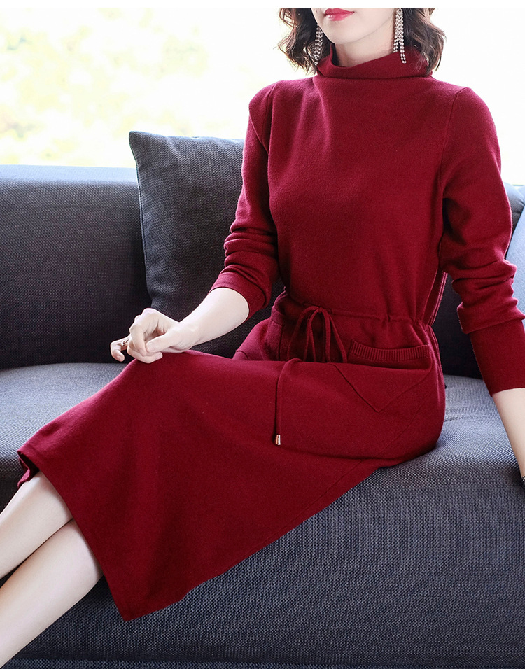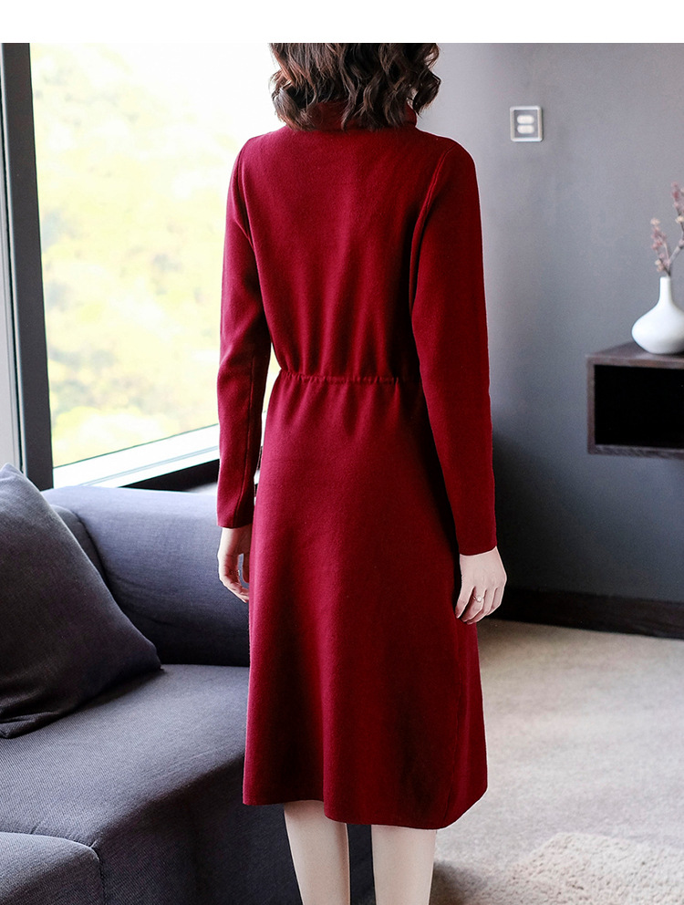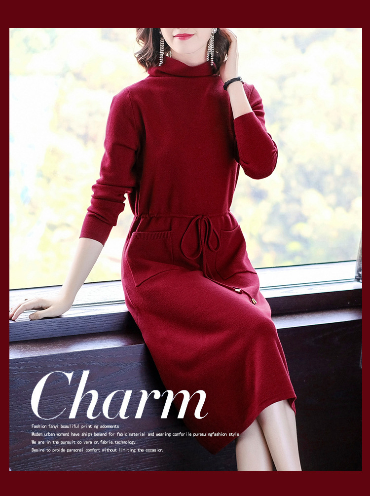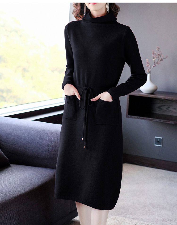 高端洋气长袖针织裙子毛衣裙中长款,秋冬裙新款女加厚贵夫人连衣裙--聚爱城