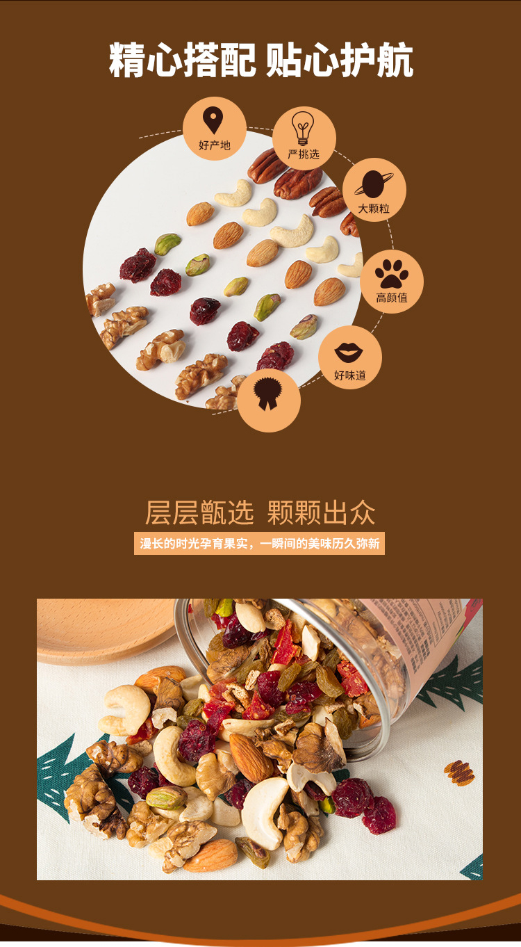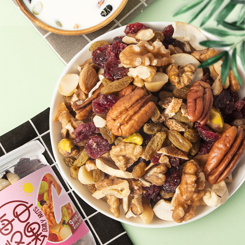开心果仁、碧根果仁、夏威夷果仁、腰果仁、扁桃仁、核桃仁、蔓越莓干、九制陈皮、葡萄干