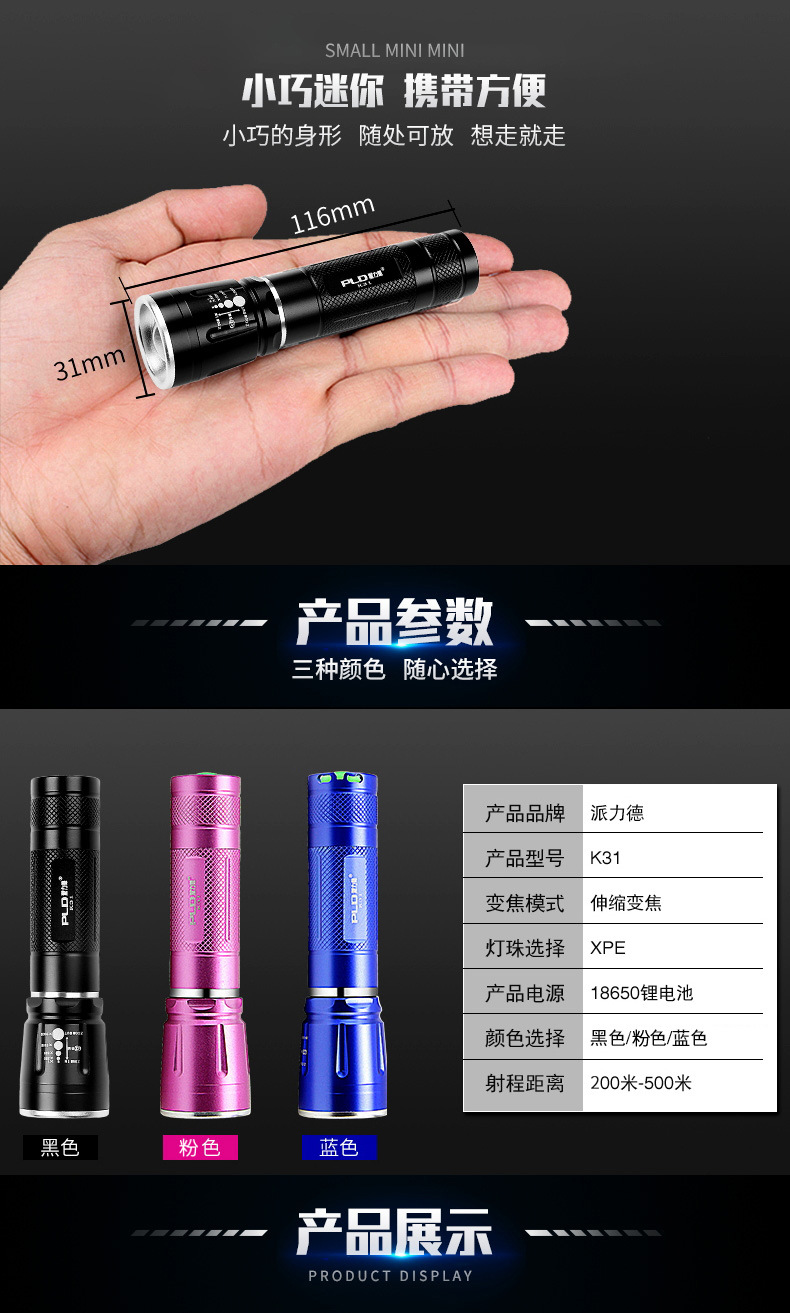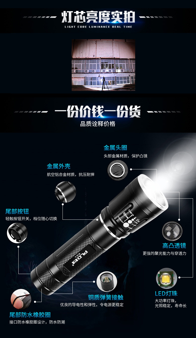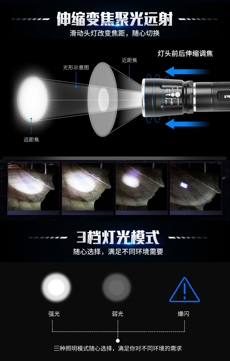 铝合金强光弱光闪光防水,伸缩变焦,夜间出行旅游日常携带,居家必备