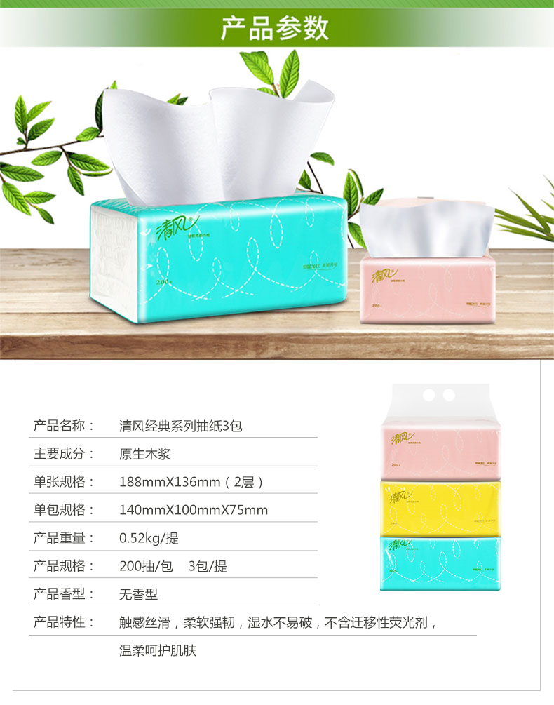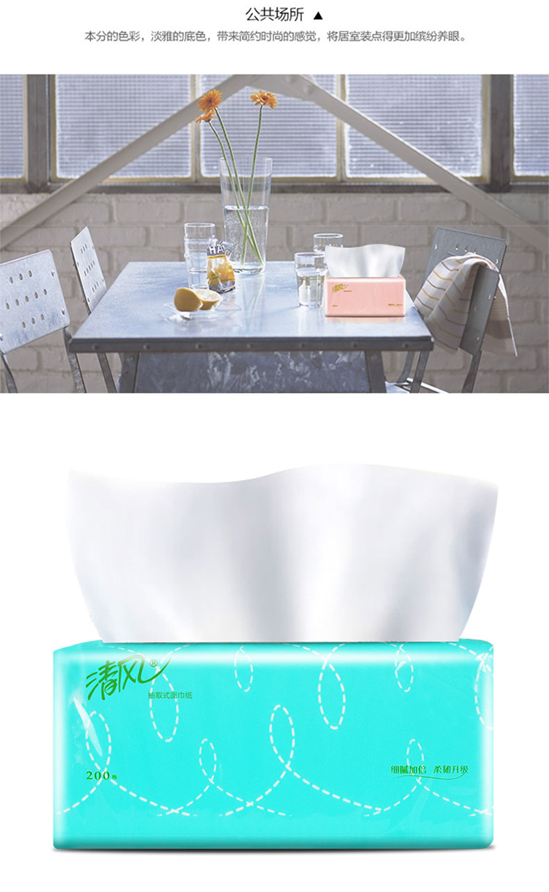 清风抽纸面巾餐巾纸婴儿可用2提6包,全网统一价20.2,点评抵金1元--聚爱城