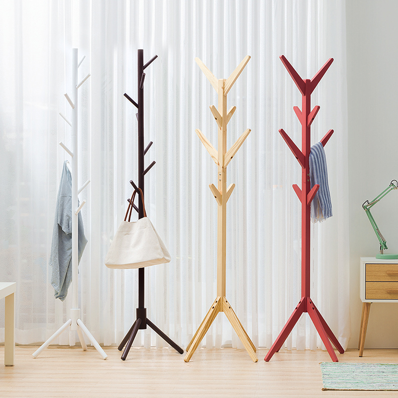 简易实木质落地衣帽架