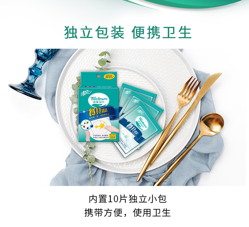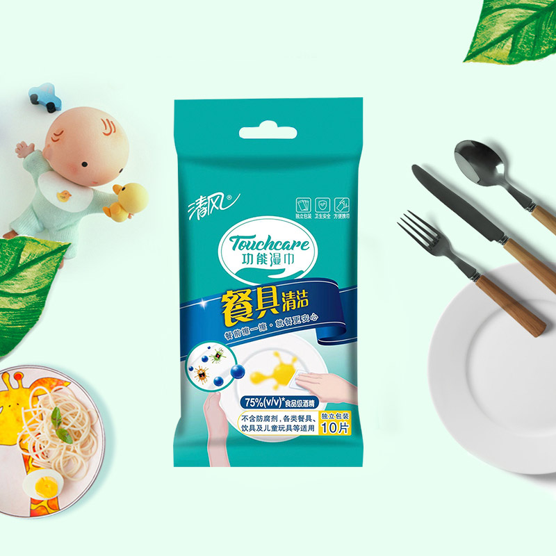清风餐具湿巾10片装(单片装)含75%酒精,全网统一价27.8,点评抵金1元--聚爱城