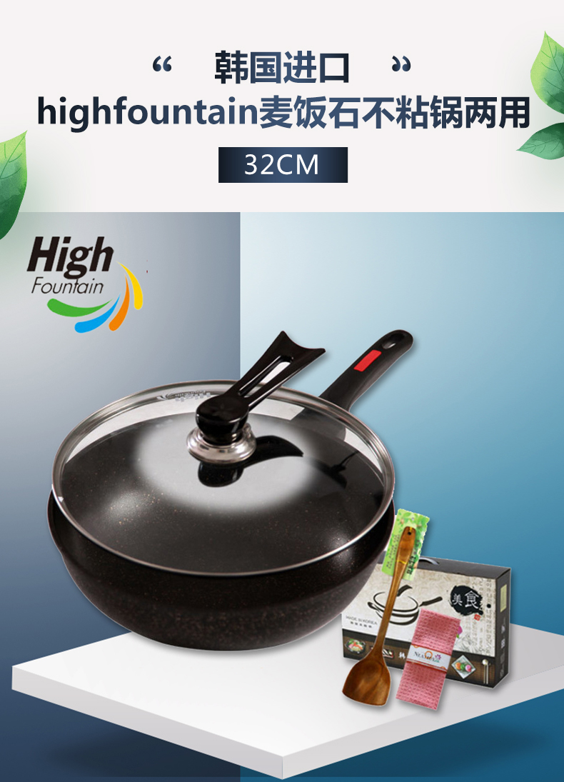 韩国进口highfountain不麦饭石粘锅两用32CM