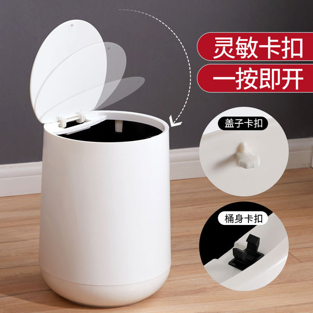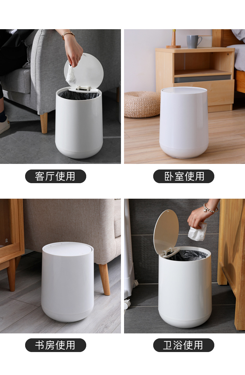 银猫新款时尚干湿分离圆形按压式垃圾桶,适用于卫生间、客厅、厨房、卧室--聚爱城
