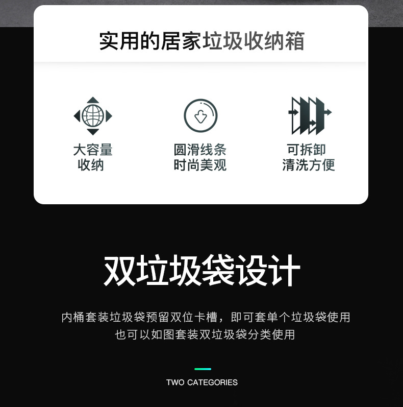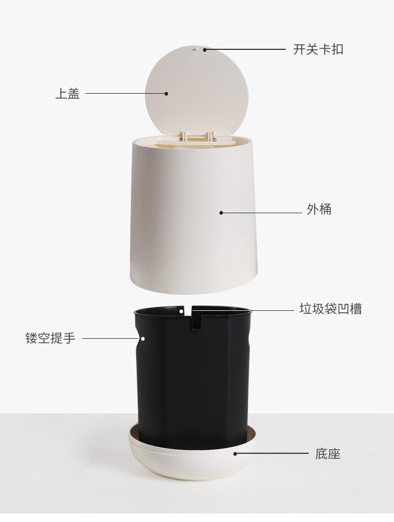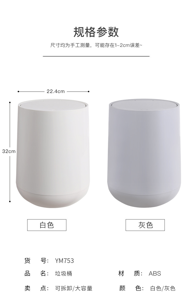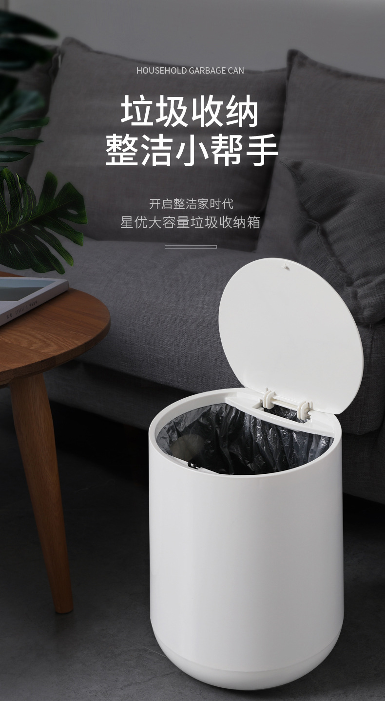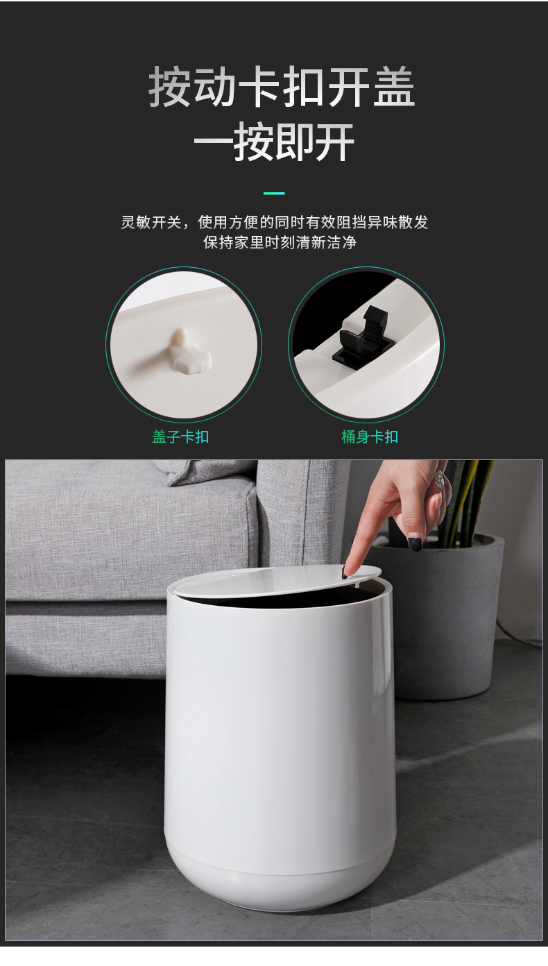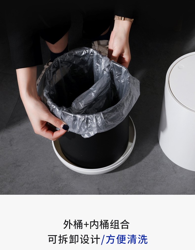 银猫新款时尚干湿分离圆形按压式垃圾桶,适用于卫生间、客厅、厨房、卧室