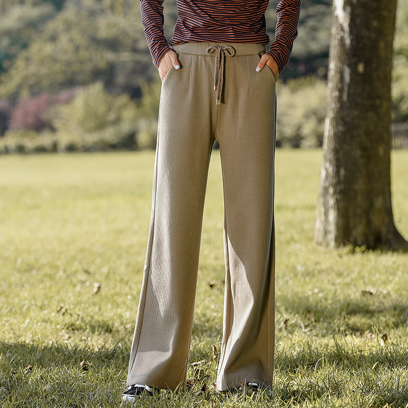 雪尼尔文艺秋冬新款阔腿宽松高腰加厚休闲女裤