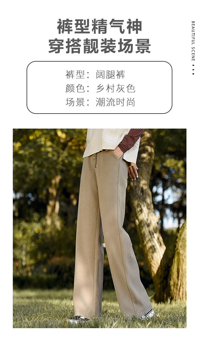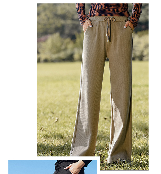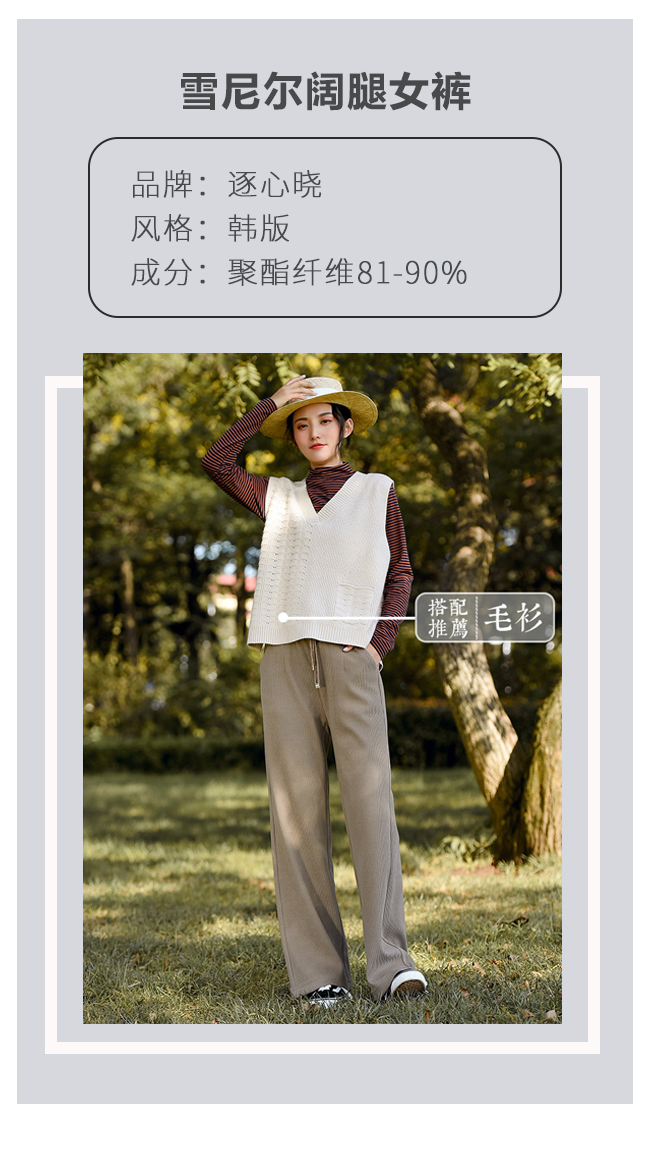 雪尼尔文艺秋冬新款阔腿宽松高腰加厚休闲女裤--聚爱城