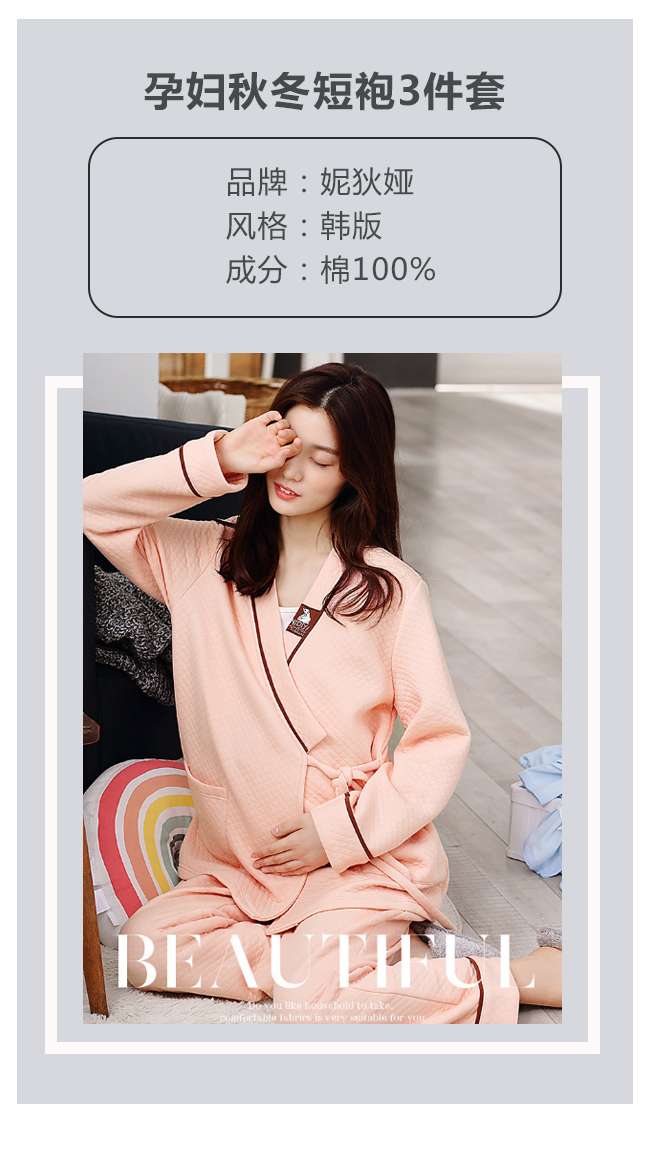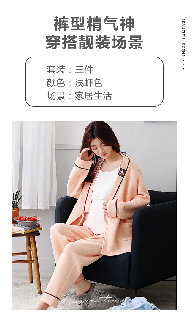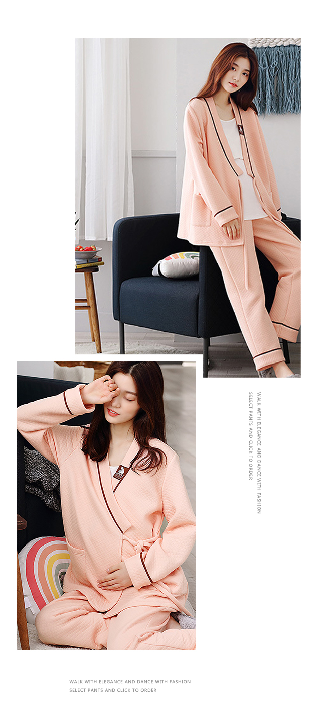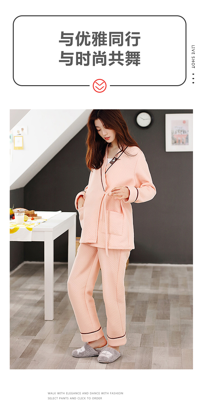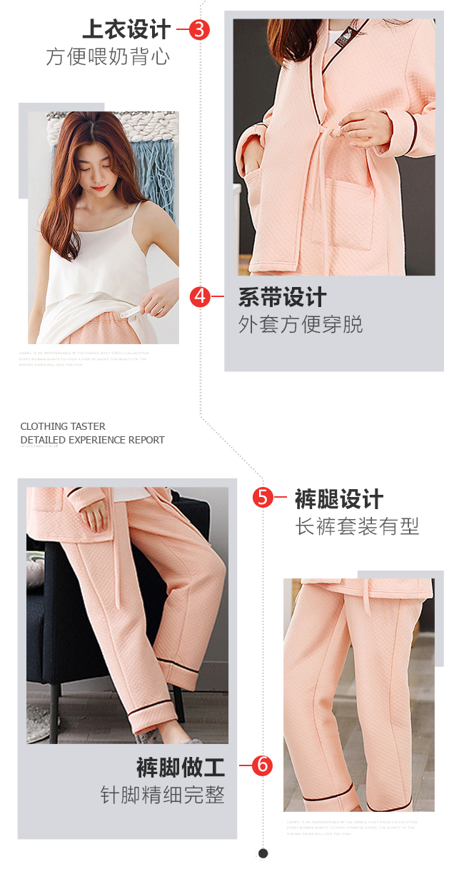 品牌纯棉空气夹层孕妇睡衣吊带产后哺乳秋冬月子服3件套装