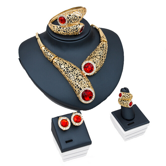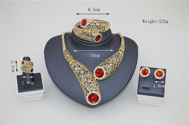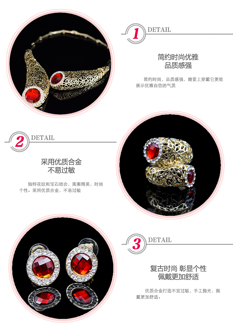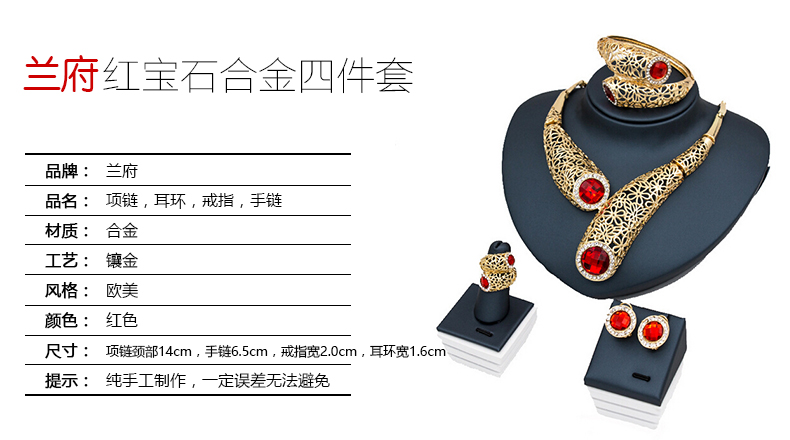 欧美高品质新娘项链手链耳环戒指四件套--聚爱城